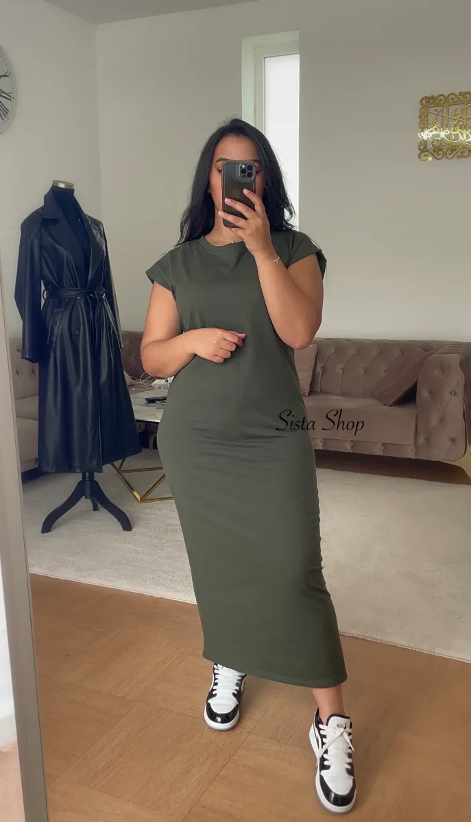 Robe simple à manche courte. Information : Le mannequin mesure 1m59 et porte une taille unique.