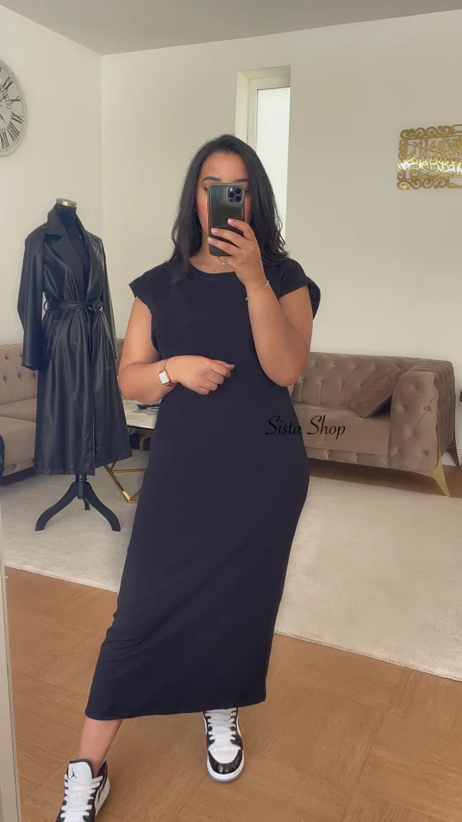Robe simple à manche courte. Information : Le mannequin mesure 1m59 et porte une taille unique.