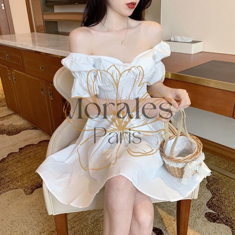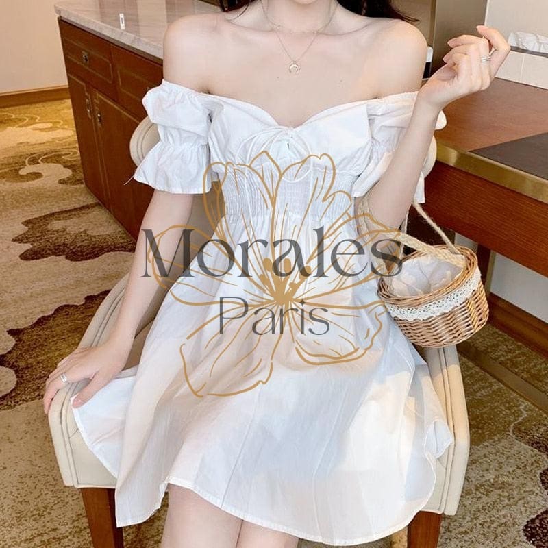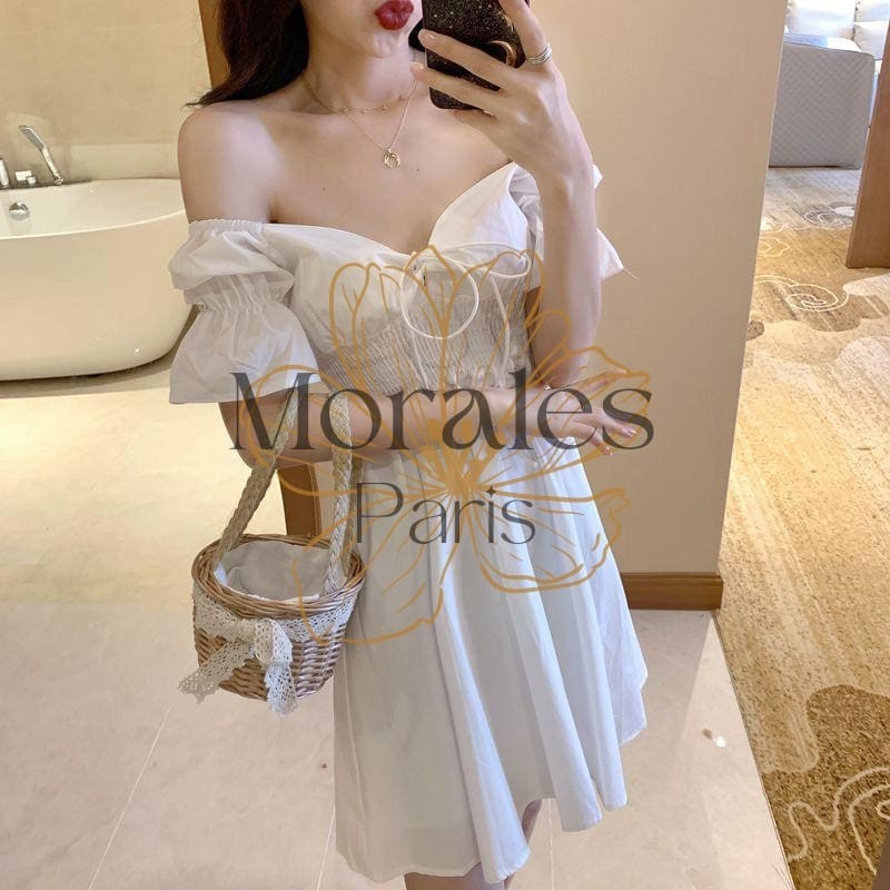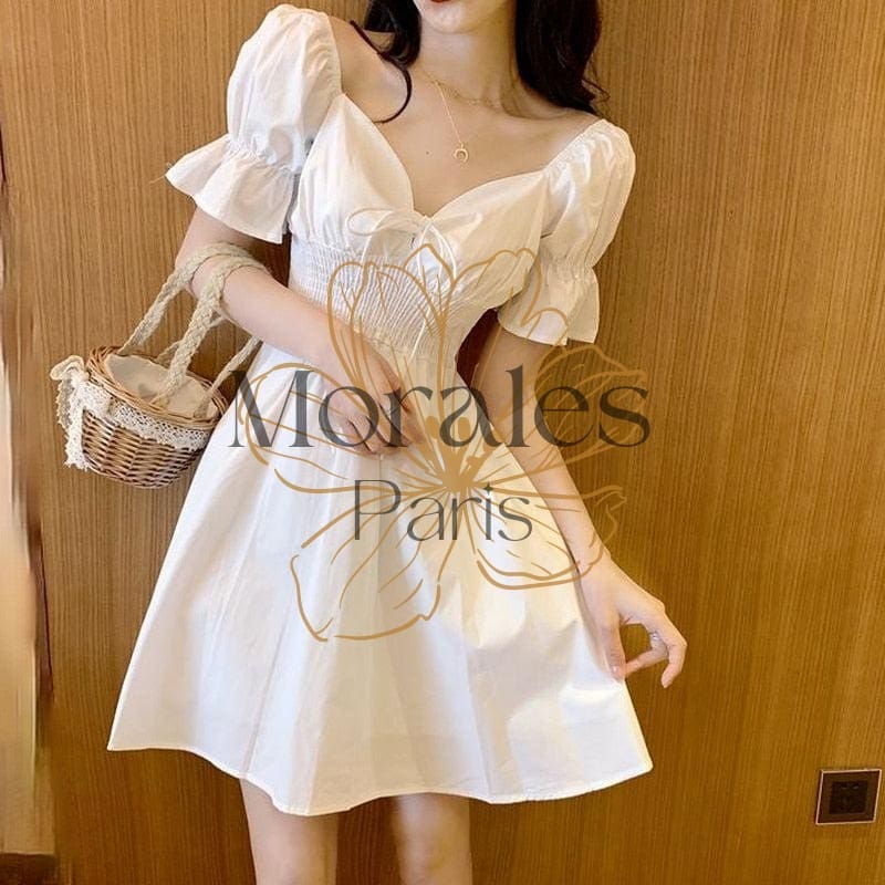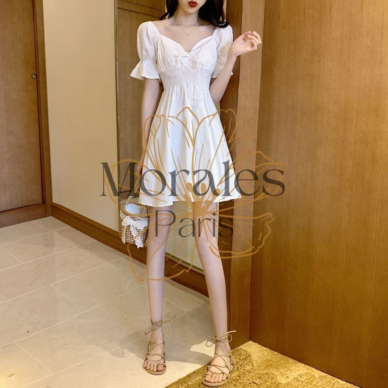 Robe blanche bohémienne courte à manches bouffantes