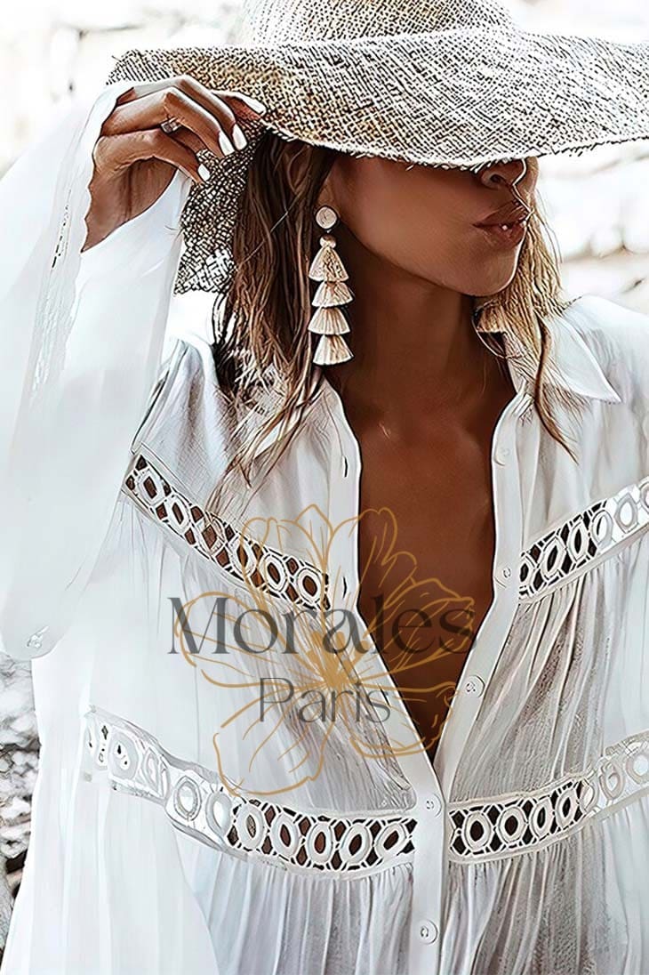 Notre robe de style Bohème est la plus belle option pour un look bohème chic. Elle est blanche, courte et légère, avec un chemisier semi-transparent orné de boutons. Les manches évasées ajoutent une touche de féminité et de romantisme, tandis que le style général vous fera sentir comme la reine de la bohème. Croyez-nous, c’est une robe que vous ne voudrez jamais enlever !