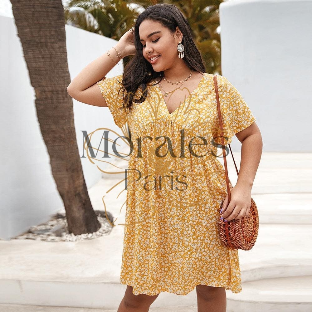 Vivez l’été avec notre robe courte bohème en coton et polyester. Déclinée en plusieurs couleurs avec un motif fleuri, elle apportera une touche de fraîcheur à votre look. Dotée de manches courtes et d’un col en V, cette robe ample d’une grande taille est parfaite pour vos journées sur la plage ou en ville.