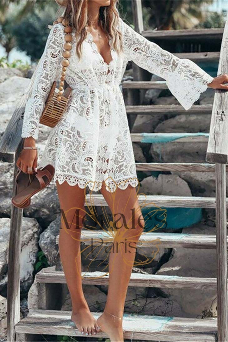 Mini Robe Blanche En Dentelle Transparente