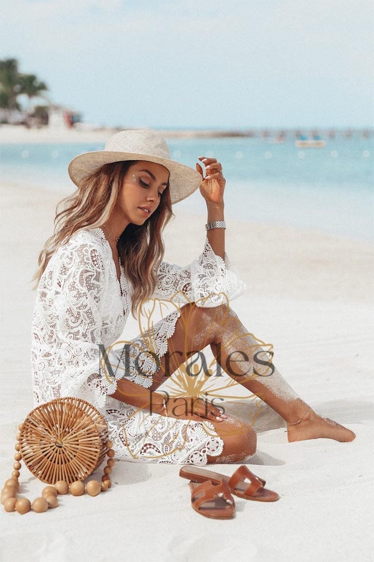 Découvrez notre superbe nouvelle robe Robe Bohème Crochetée ! Cette robe de plage somptueuse est faite à partir d’une exquise dentelle au crochet et est semi-transparente pour laisser entrevoir la peau. La jupe courte et évasée est idéale pour mettre en valeur vos jambes, tandis que le motif en dentelle complexe donne une touche de romance. Que vous vous promeniez sur la plage ou que vous profitiez d’une fête estivale, cette merveilleuse robe vous fera vous sentir comme une vraie Diva Bohème.