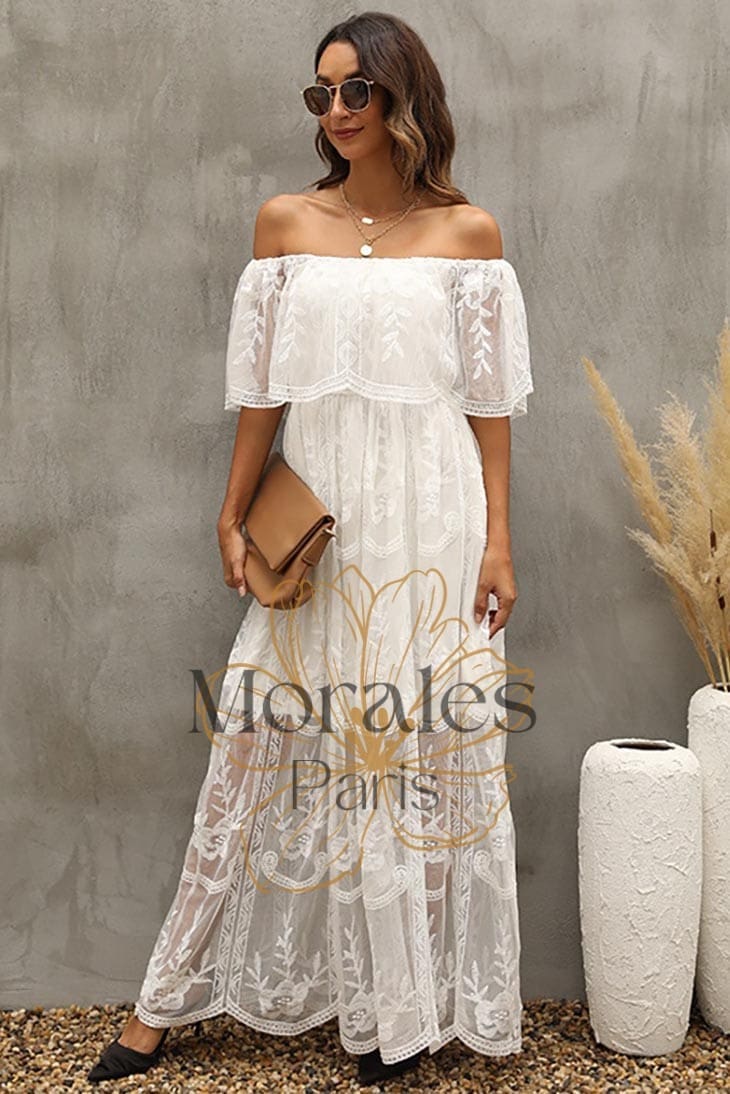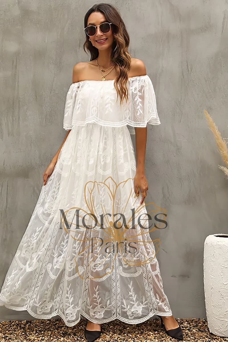 Vous cherchez une tenue qui vous fera vous sentir comme une reine ? Découvrez notre Robe Bohème Blanche à Col Bardot !