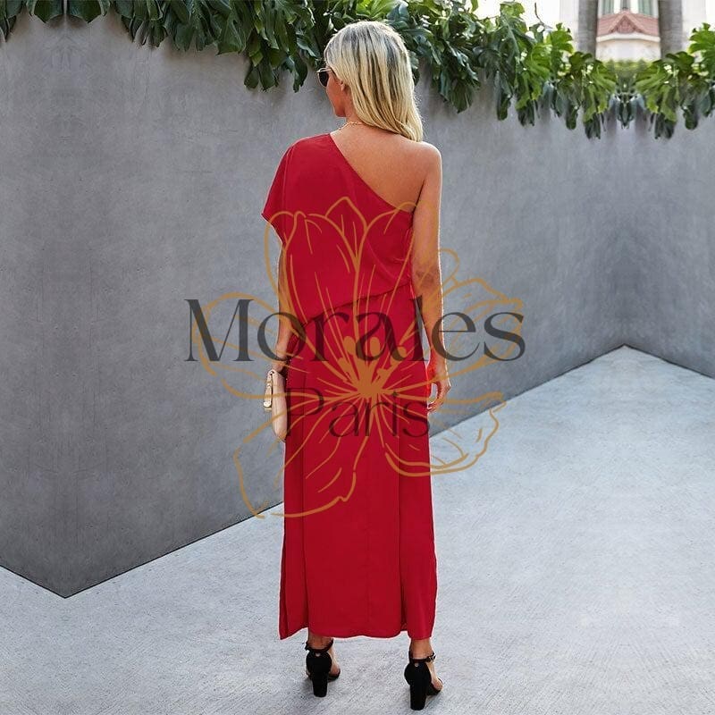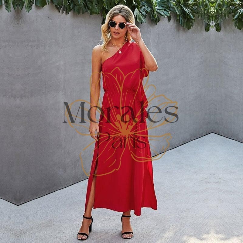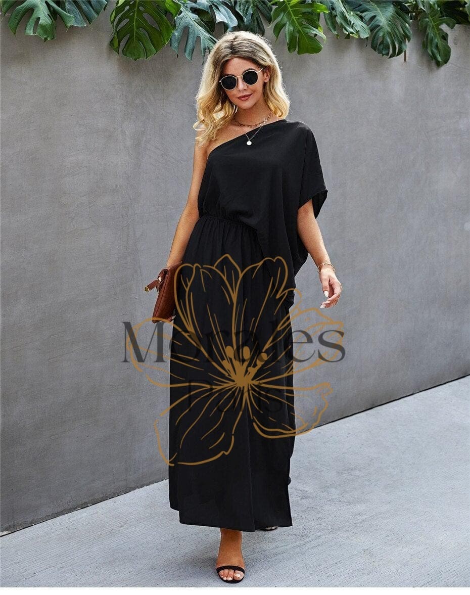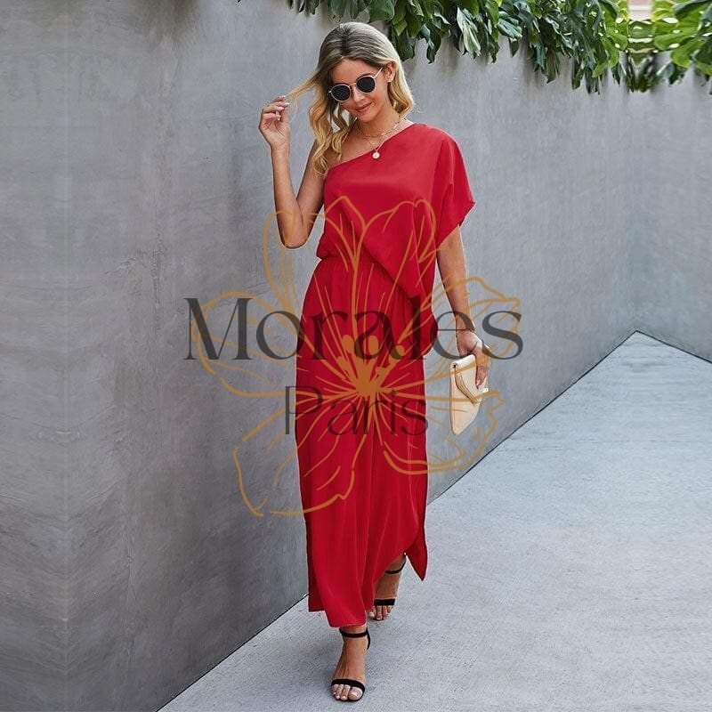 Adoptez une robe longue bohème avec un col slash et une coupe fendue