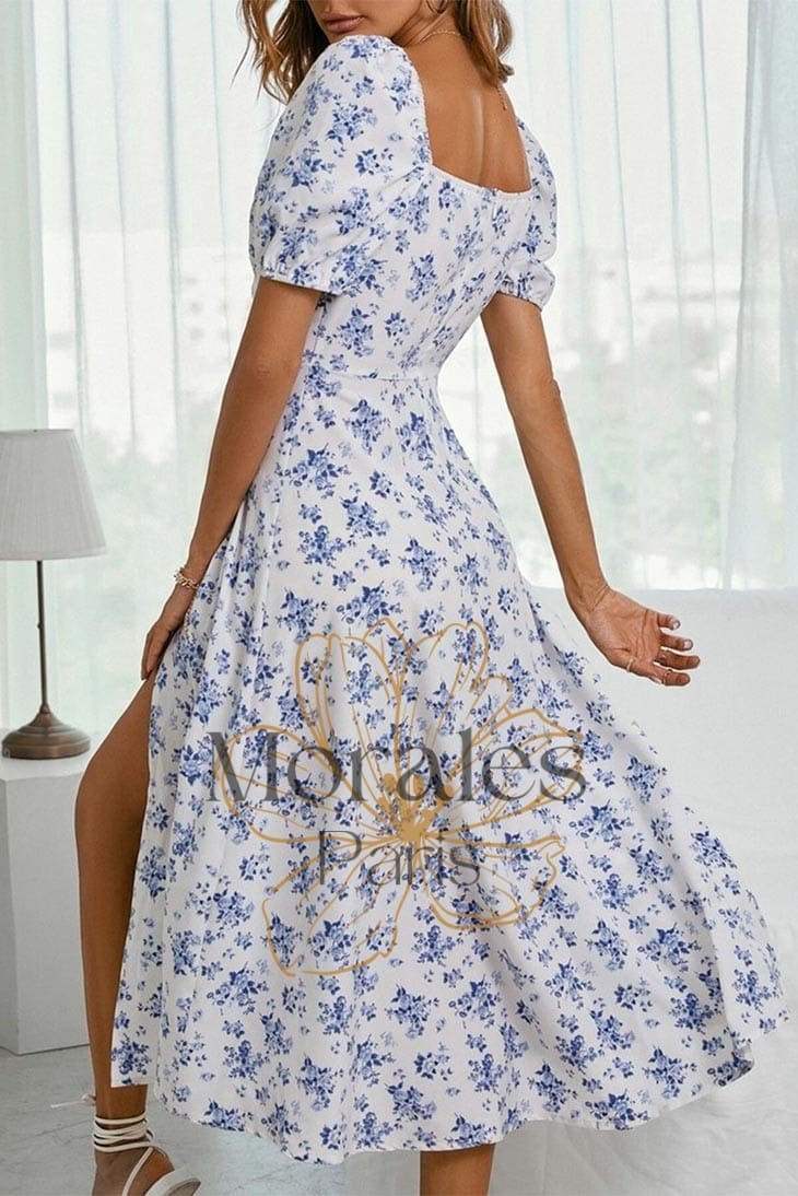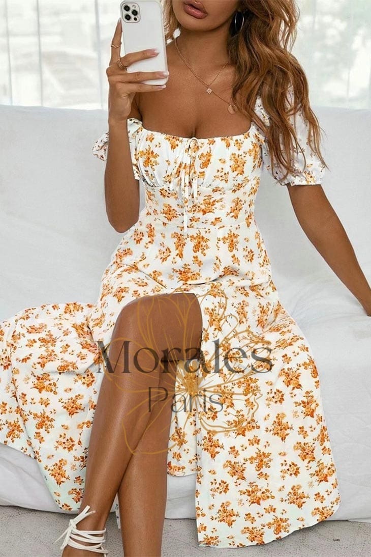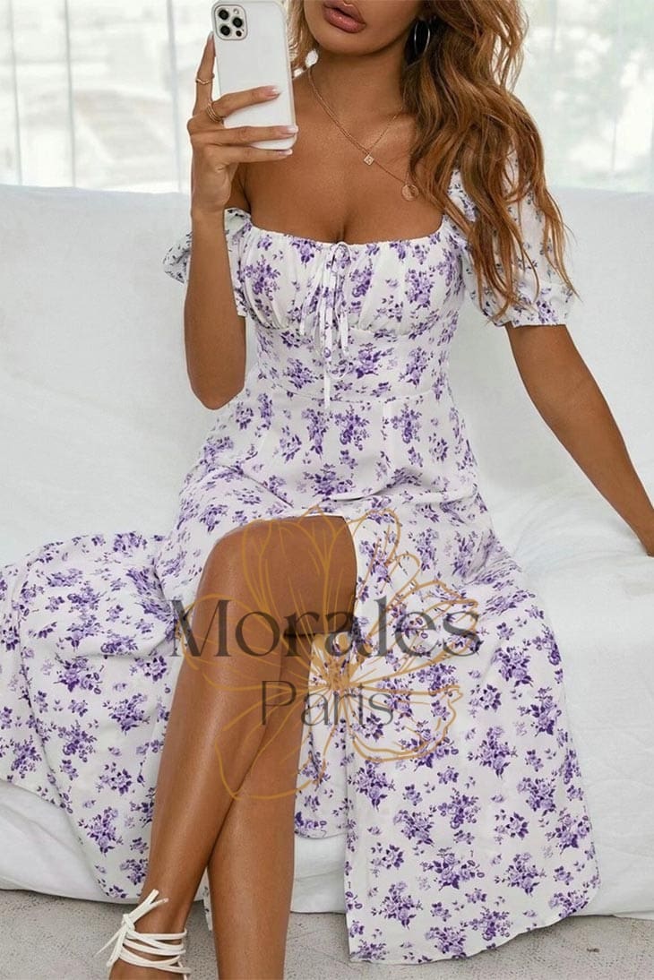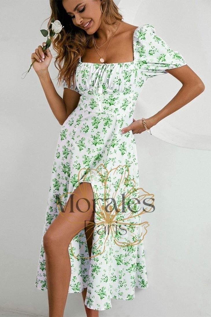 Cette pièce est parfaite pour les filles bohèmes stylées qui veulent ajouter une touche d’élégance à leur look. La jolie encolure carrée et les manches courtes font de cette robe le choix idéal pour les journées d’été, tandis que la jupe fendue et la taille ajustable lui confèrent une coupe flatteuse. De plus, le cordon de serrage à l’encolure vous permet de modifier le style en fonction de votre humeur.