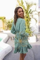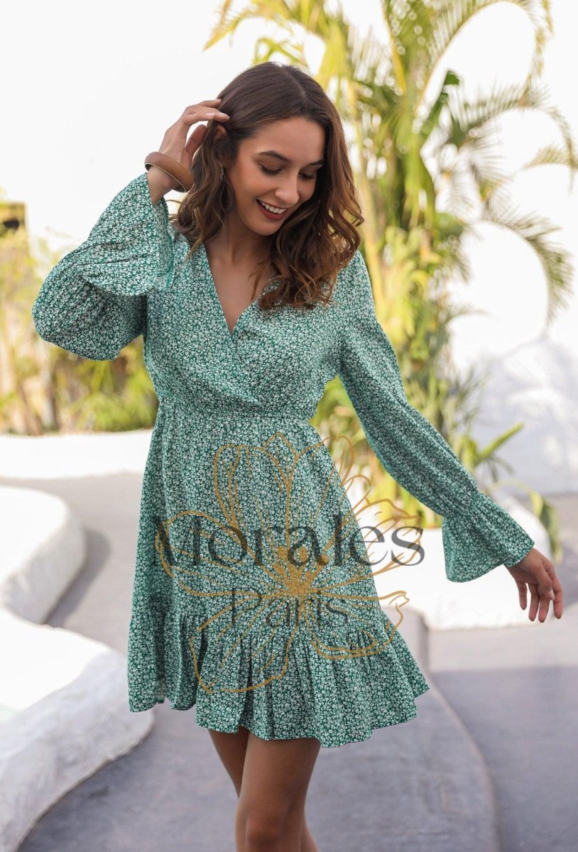 Optez pour le style bohème et laisser le confort être votre guide ! Cette robe verte à col en V est parfaite pour les femmes qui souhaitent rester chic et à l’aise à la fois. Sa coupe décontractée vous donnera l’impression d’être en vacances toute l’année. Ne perdez pas plus de temps et ajoutez cette pièce indispensable à votre garde-robe dès maintenant !