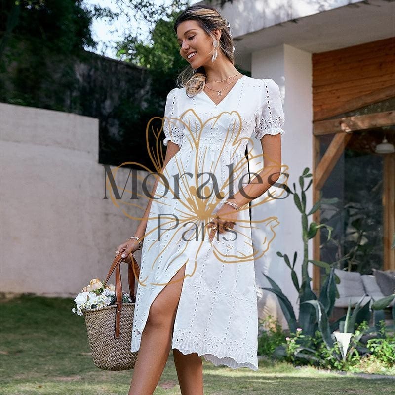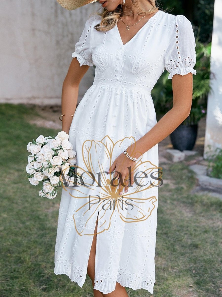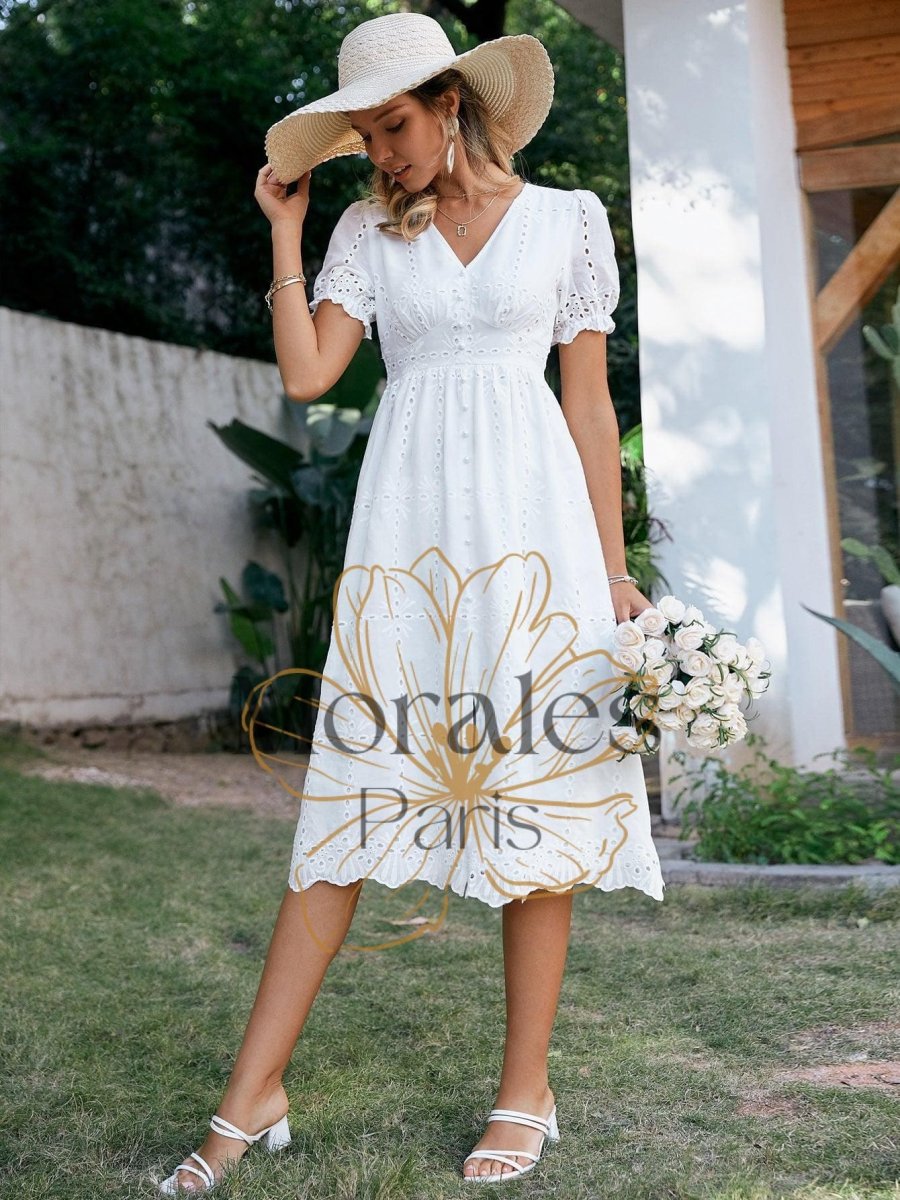 Notre conception unique est faite pour vous procurer une sensation de liberté et de confort. Fabriquée à partir de 100% coton, cette ravissante robe blanche s’accordera parfaitement à toutes vos sorties estivales. Son style ample et son tissu doux vous permettront de vous déplacer et danser librement. Son imprimé bohème viendra parfaire votre look avec une touche de charme discret. N’attendez plus et ajoutez cette pièce indispensable à votre dressing – vous ne le regretterez pas !