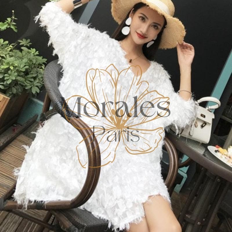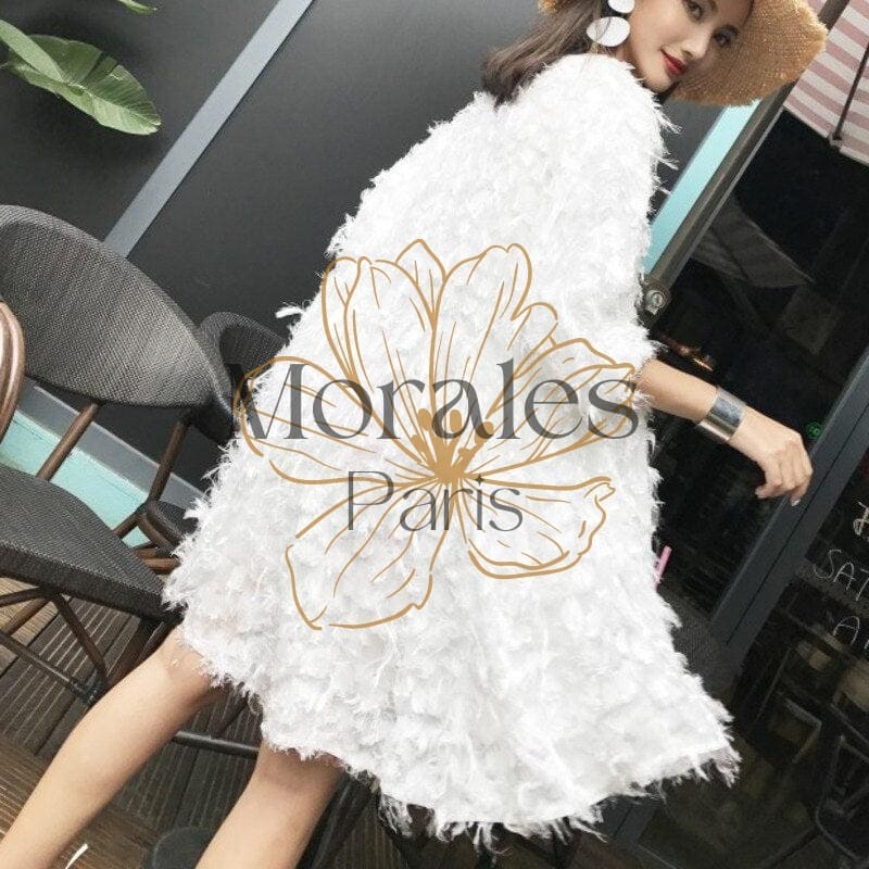Laissez-vous séduire par une robe courte bohémienne originale. Son coloris blanc peut s’adapter à toutes les situations tout en vous donnant une allure élégante et innocente. Offrez-vous une tenue à plumes inédite qui saura attirer l’attention des personnes autour de vous. Cette robe courte blanche sera parfaite pour un mariage, une fête habillée ou pour une petite promenade en ville.