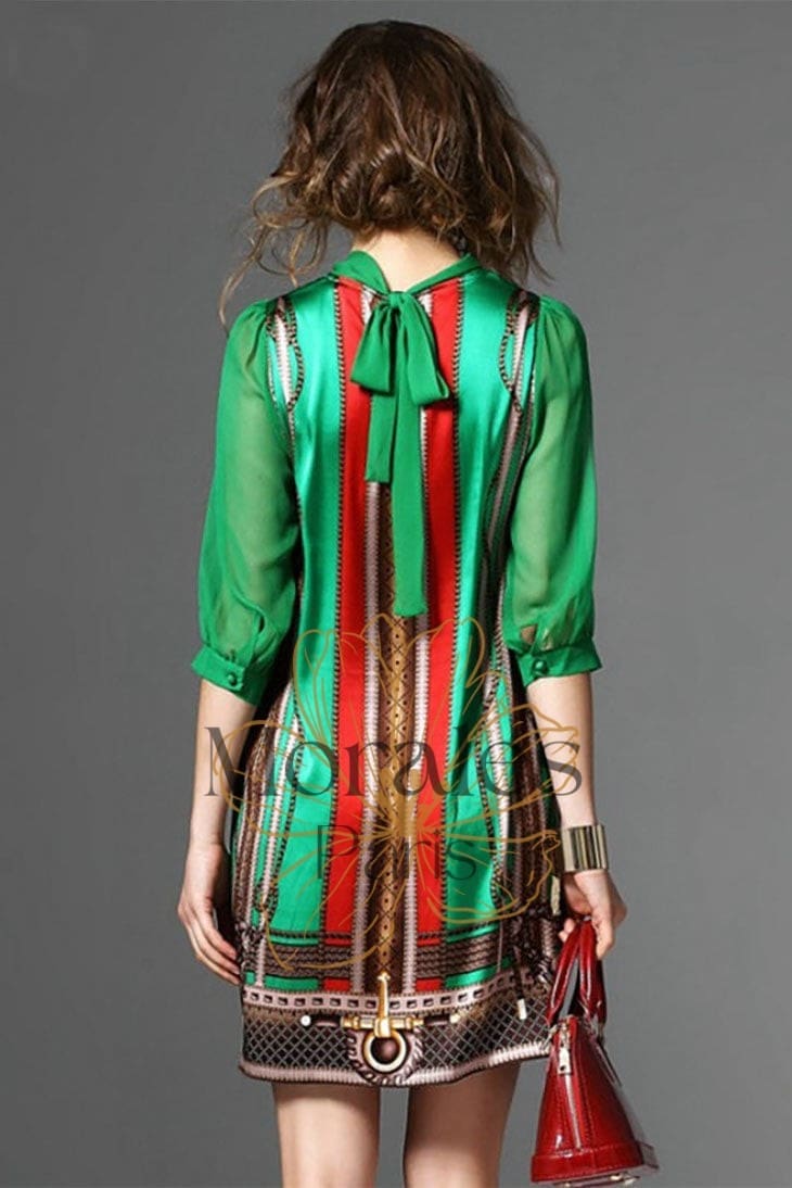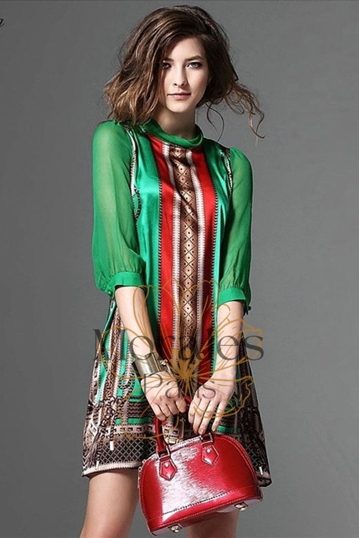 Mini Robe Verte Décolletée Imprimée