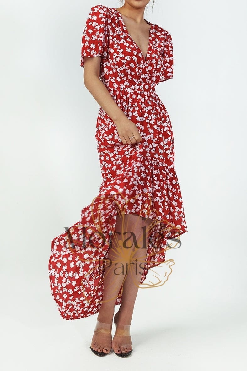 Cette jolie robe bohème à motifs floraux est dotée d’une coupe asymétrique qui permet de dégager le cou et de laisser place à un joli collier. Son ourlet volanté offre une allure légère et féminine à chaque pas. Une pièce parfaite pour les journées de vacances comme pour le travail.