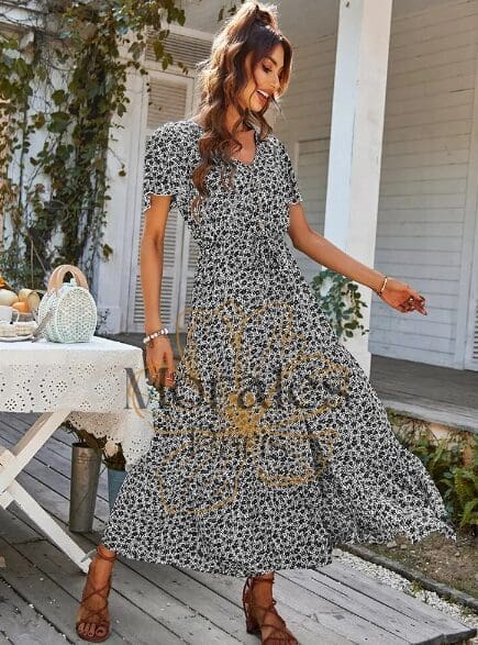 Adoptez ce style bohème chic avec cette robe longue fleurie. Cette pièce est légère et fluide, et dispose d’une encolure bateau et des manches bouffantes qui lui donnent un look romantique et champêtre. Son buste smocké galbe la poitrine tout en offrant un confort absolu. Portez-la avec des talons ou des baskets blanches pour un look parfait en journée ou à la campagne.