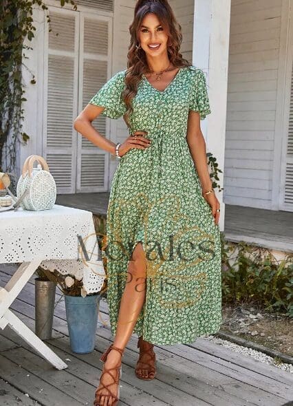 Robe Bohème Fleurie Col Carré