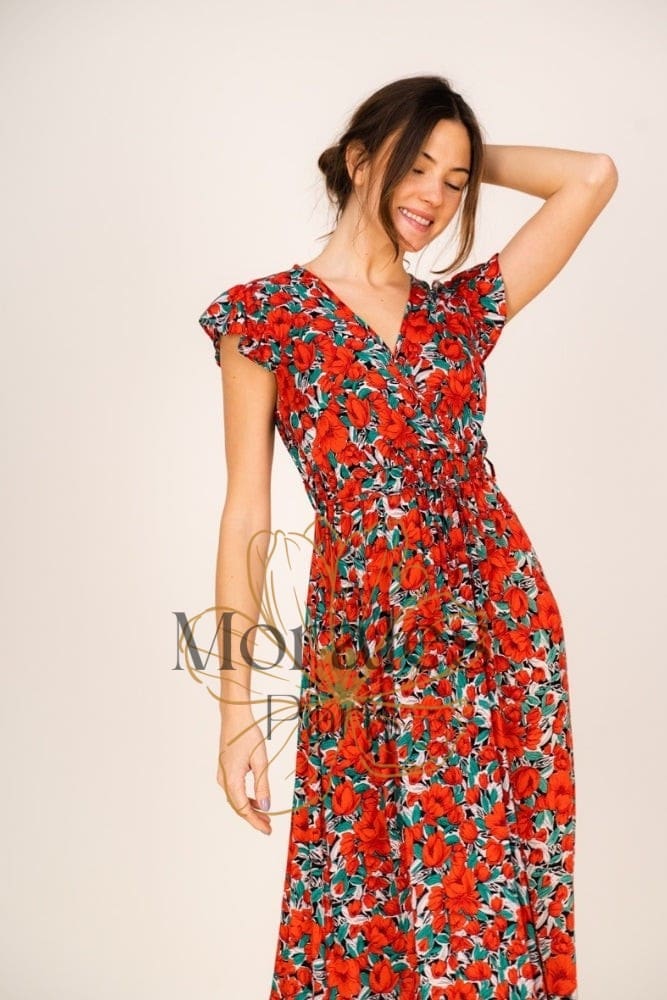 Robe Bohème Fleurie Rouge