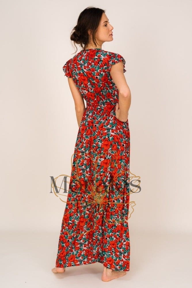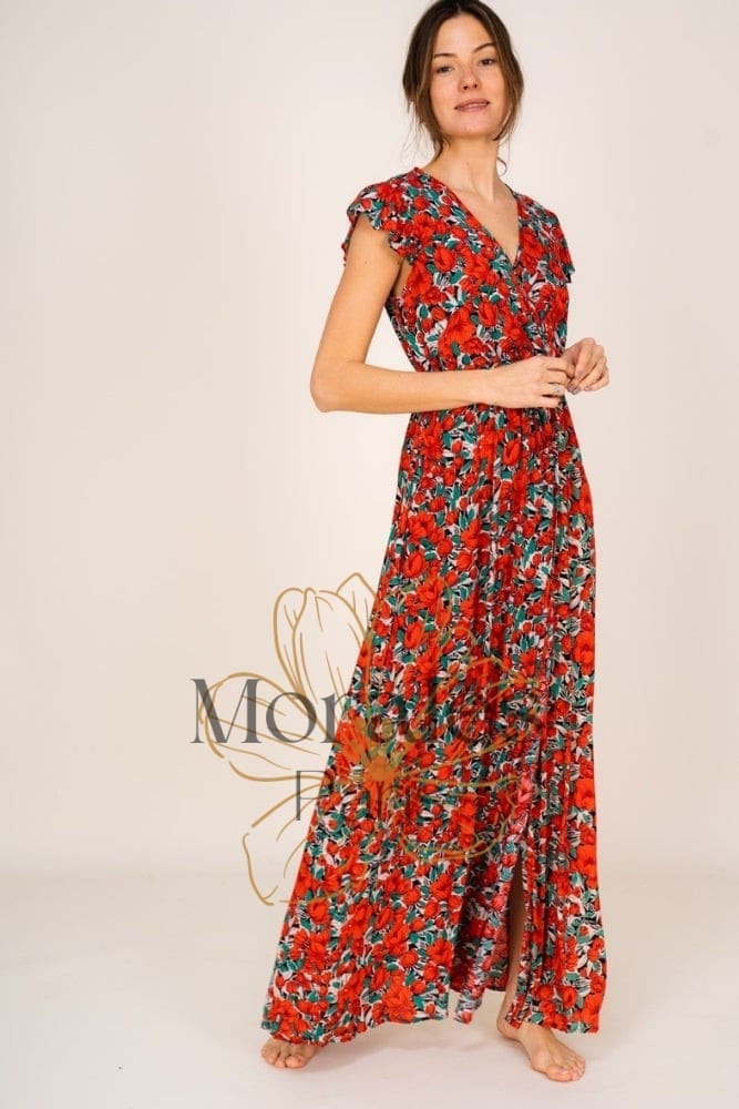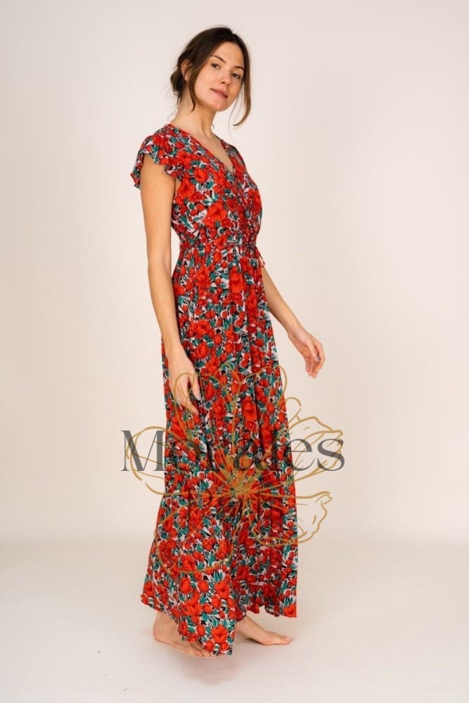 Robe bohème longue rouge et fleurie