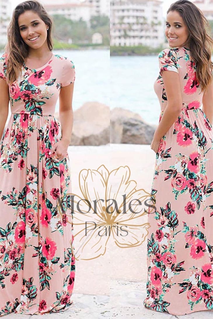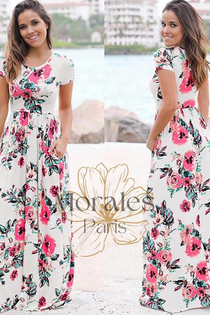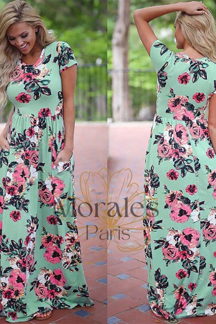 Voulez-vous être la déesse des fleurs ? Ne cherchez pas plus loin que notre superbe Robe Bohème Florale. Fabriquée dans un tissu doux et fluide, elle est ornée d’un imprimé floral complexe. Elle possède un col arrondi, des manches courtes et une coupe maxi flatteuse. Que vous soyez à un festival ou juste pour une journée ensoleillée, cette robe vous fera vous sentir fraîche et à l’aise.