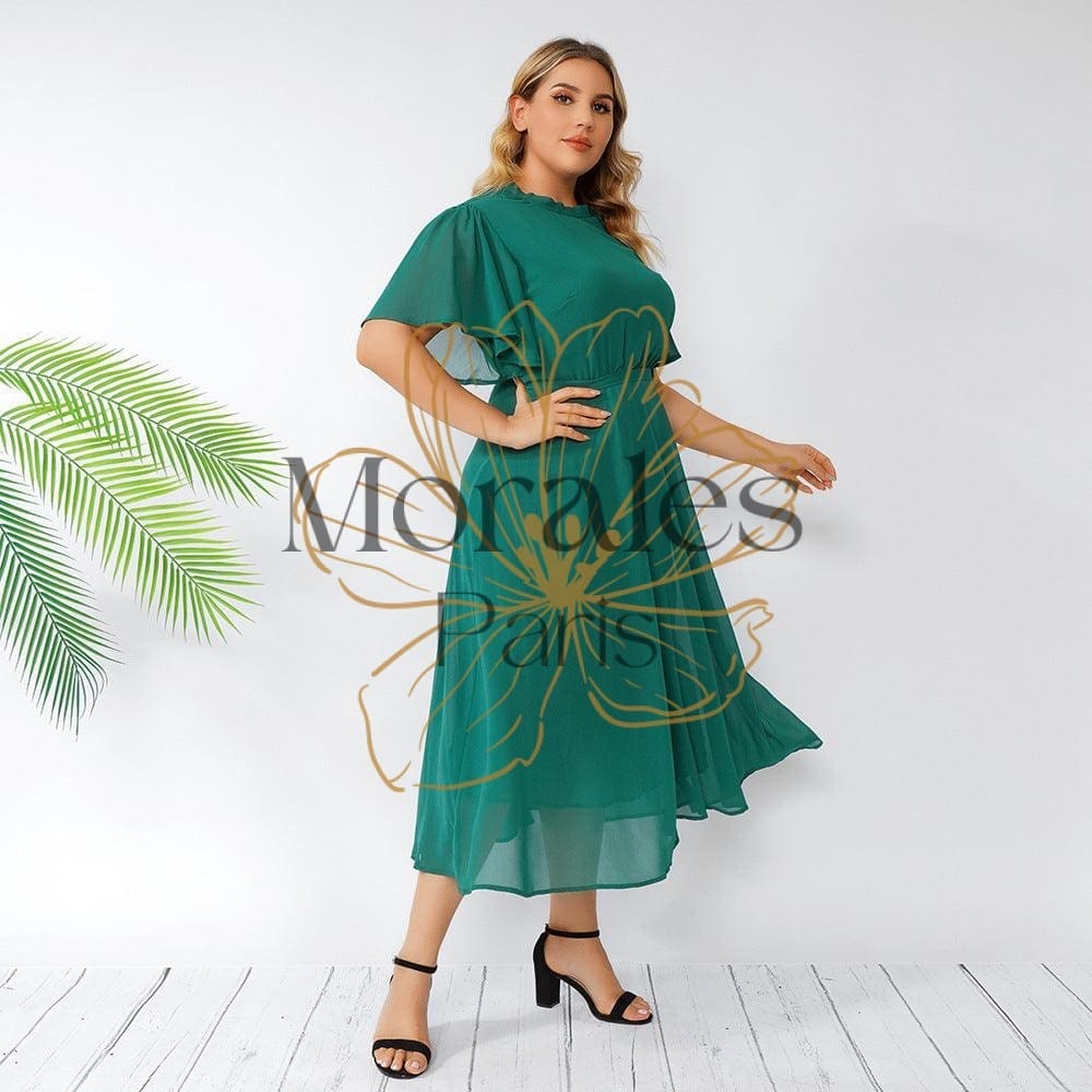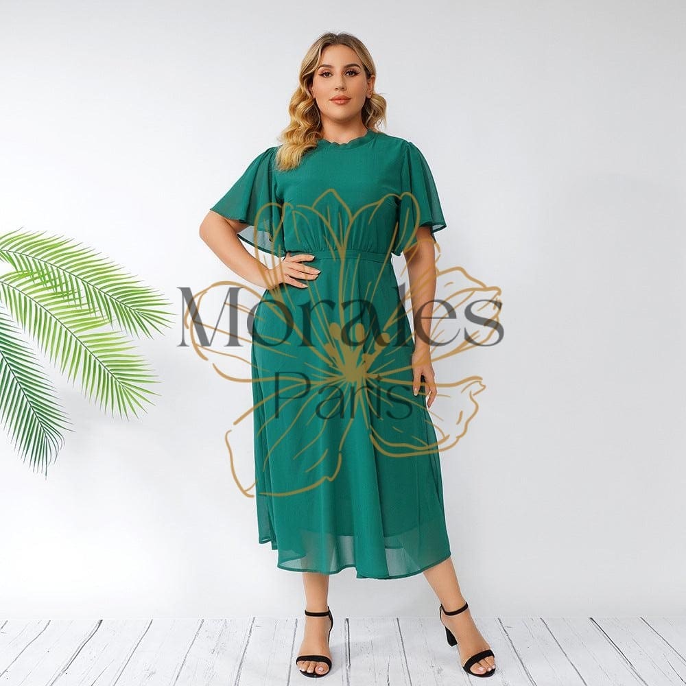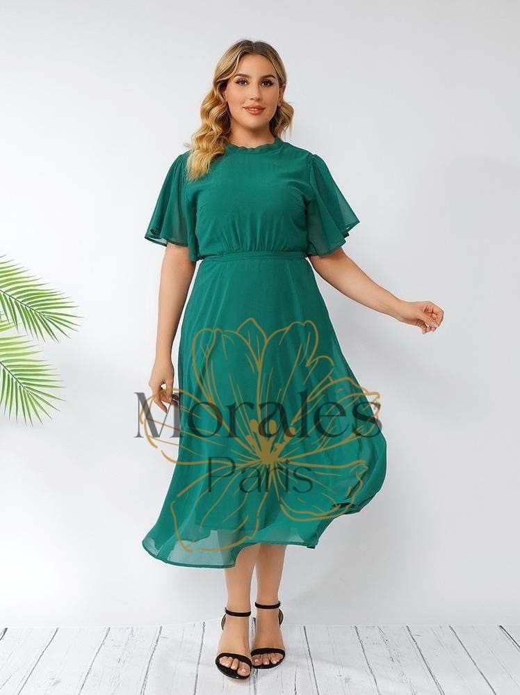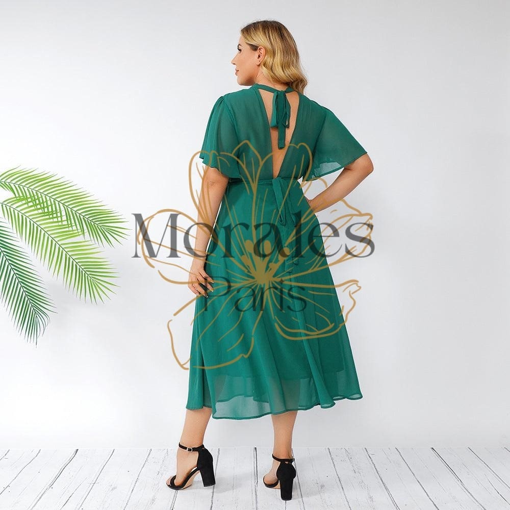 Cette robe bohème est parfaite pour les beaux jours ! Elle est transparente et légère, de couleur verte unie. Son haut droit est doté d’un col rond qui se noue sur le dos et d’un décolleté en V très féminin. Son manchon vaporeux et son jupon évasé typiquement bohémien feront fondre les cœurs ! À porter au printemps et à l’été !