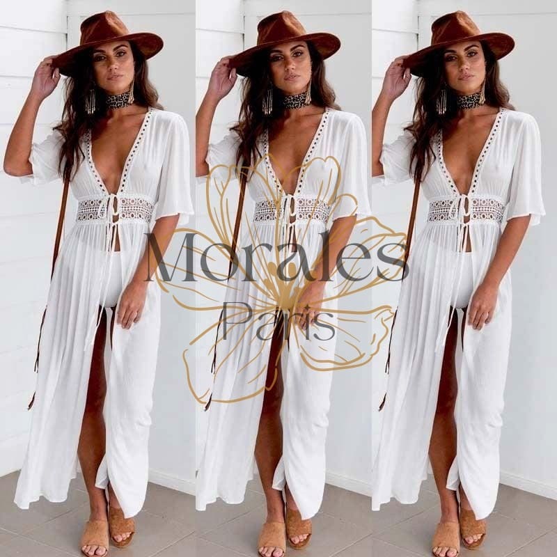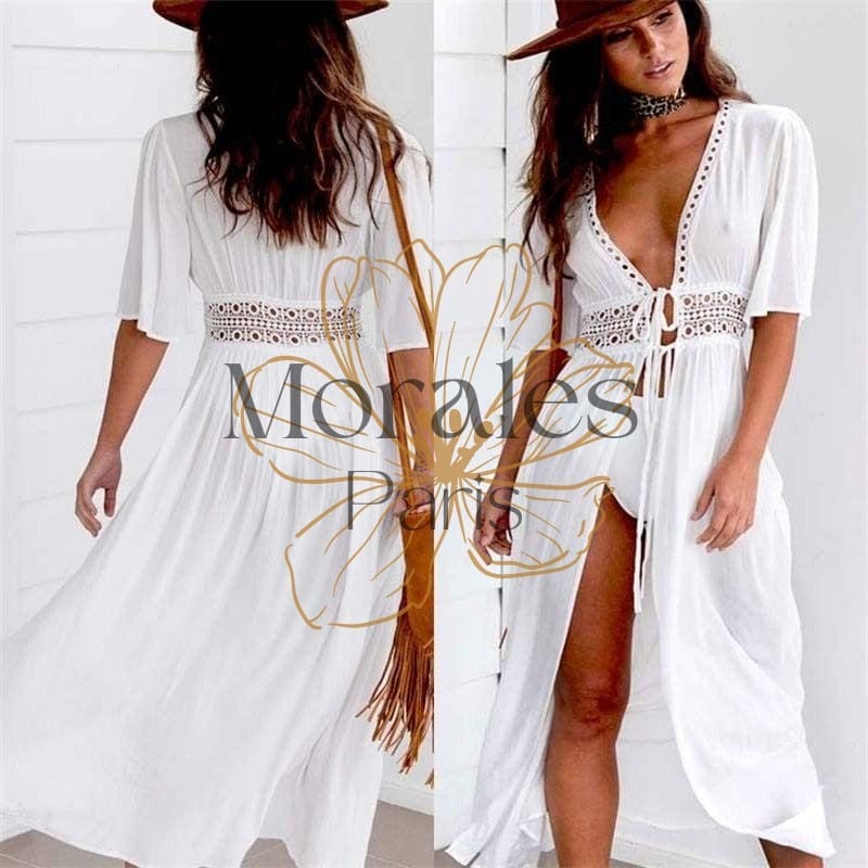 Robe blanche bohème en dentelle