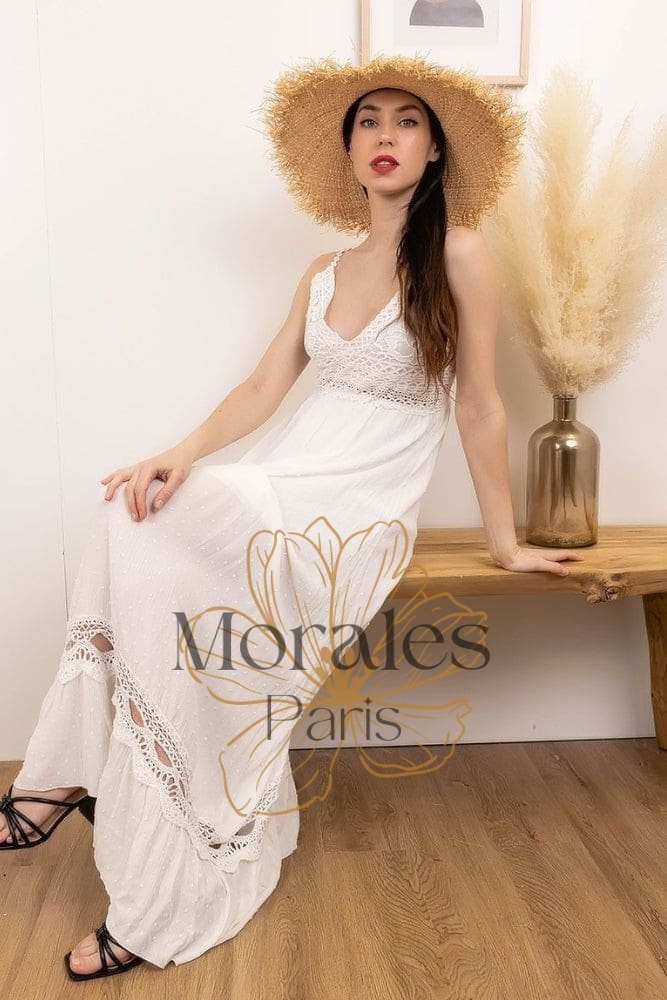 Robe longue et blanche avec dentelle brodée