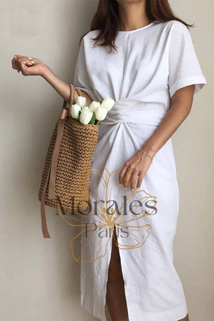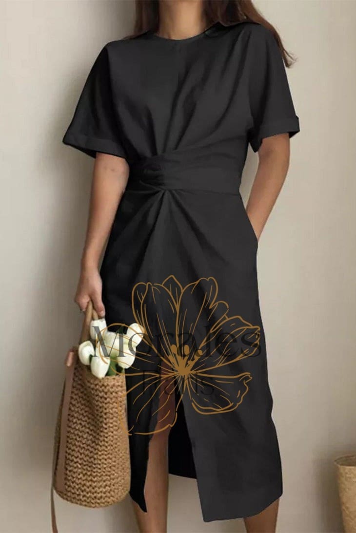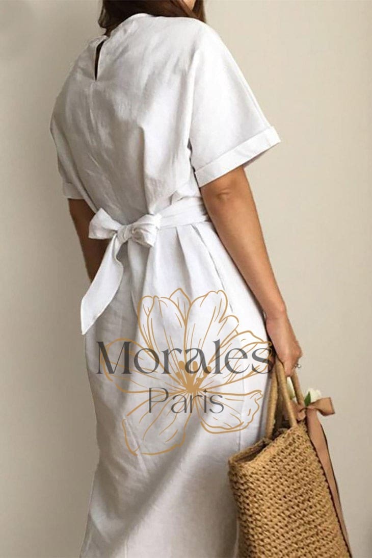 Cette sublime robe à l’allure bohème est parfaite pour toutes les fashionistas féminines. Avec sa couleur marron, son col arrondi et son nœud dans le dos, cette robe dégage la féminité et le style. La jupe fendue et les manches mi-longues apportent une pointe de sex-appeal, tandis que la silhouette générale est flatteuse et ajustée.