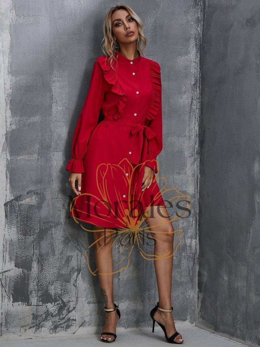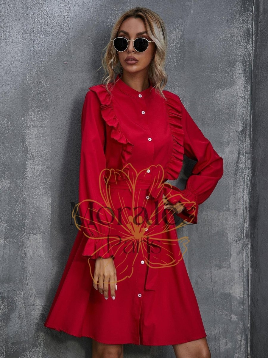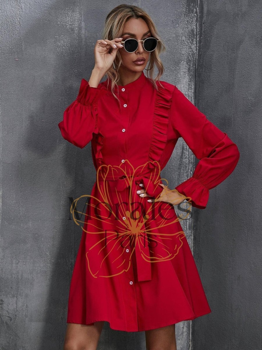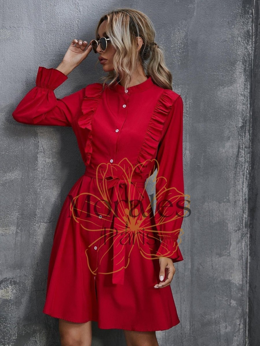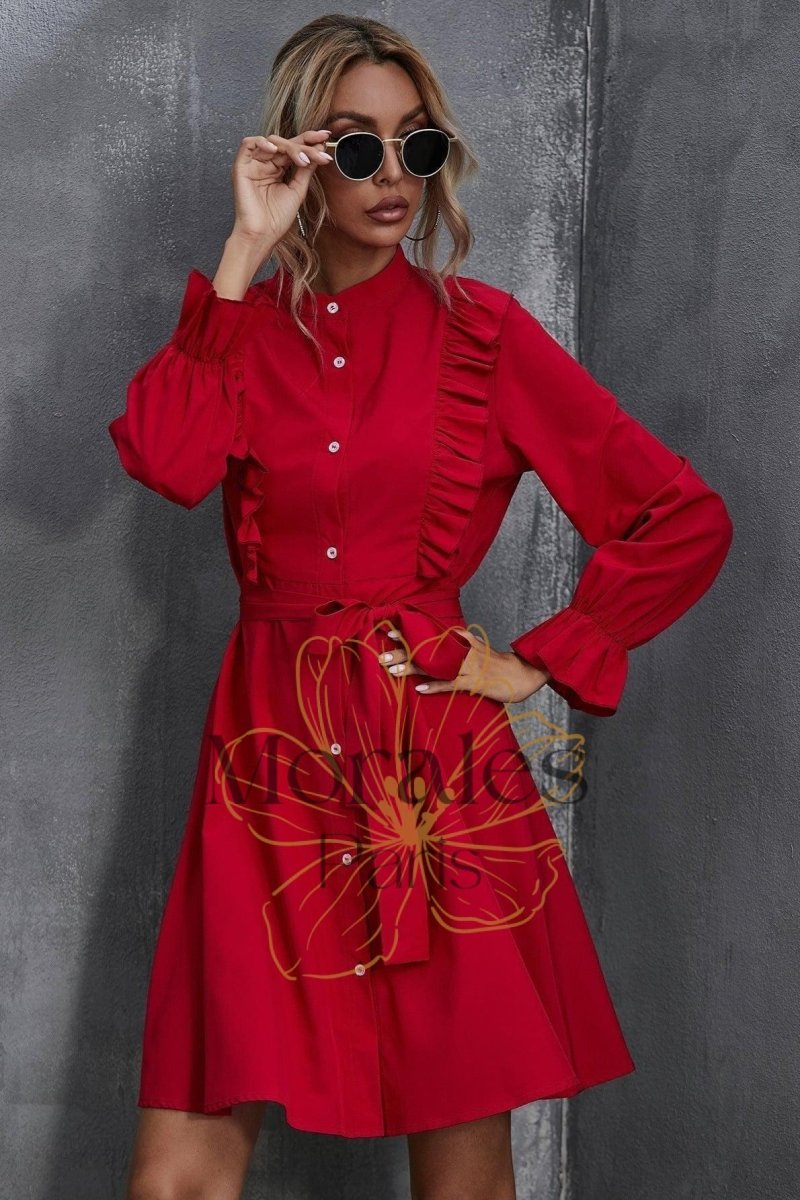 Trouvez la pièce idéale pour les amateurs de style bohème ! Une robe rouge éclatante ornée de jolis volants qui se démarque des autres. Confortable et fluide, elle est parfaite pour une journée ensoleillée ou une soirée chic.