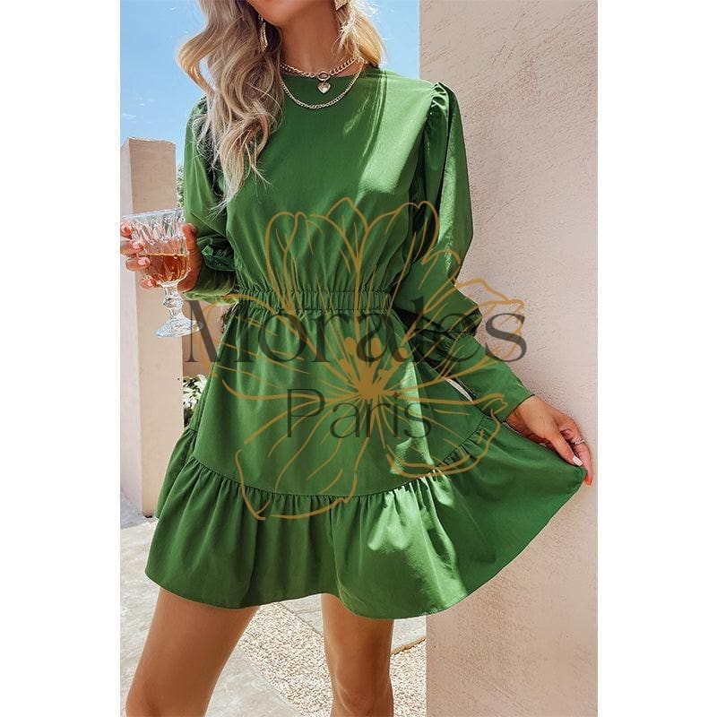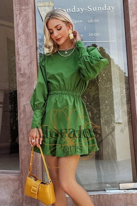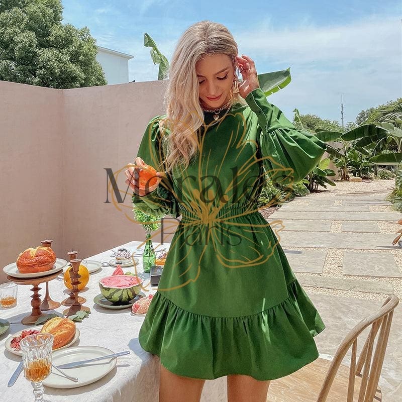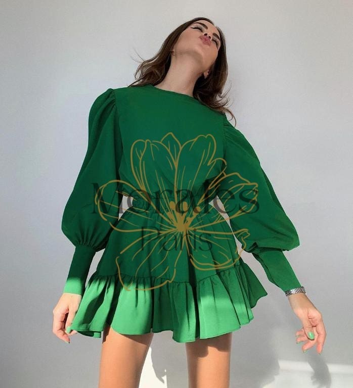 Robe Bohème Verte Manches Lanterne
