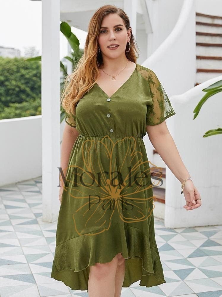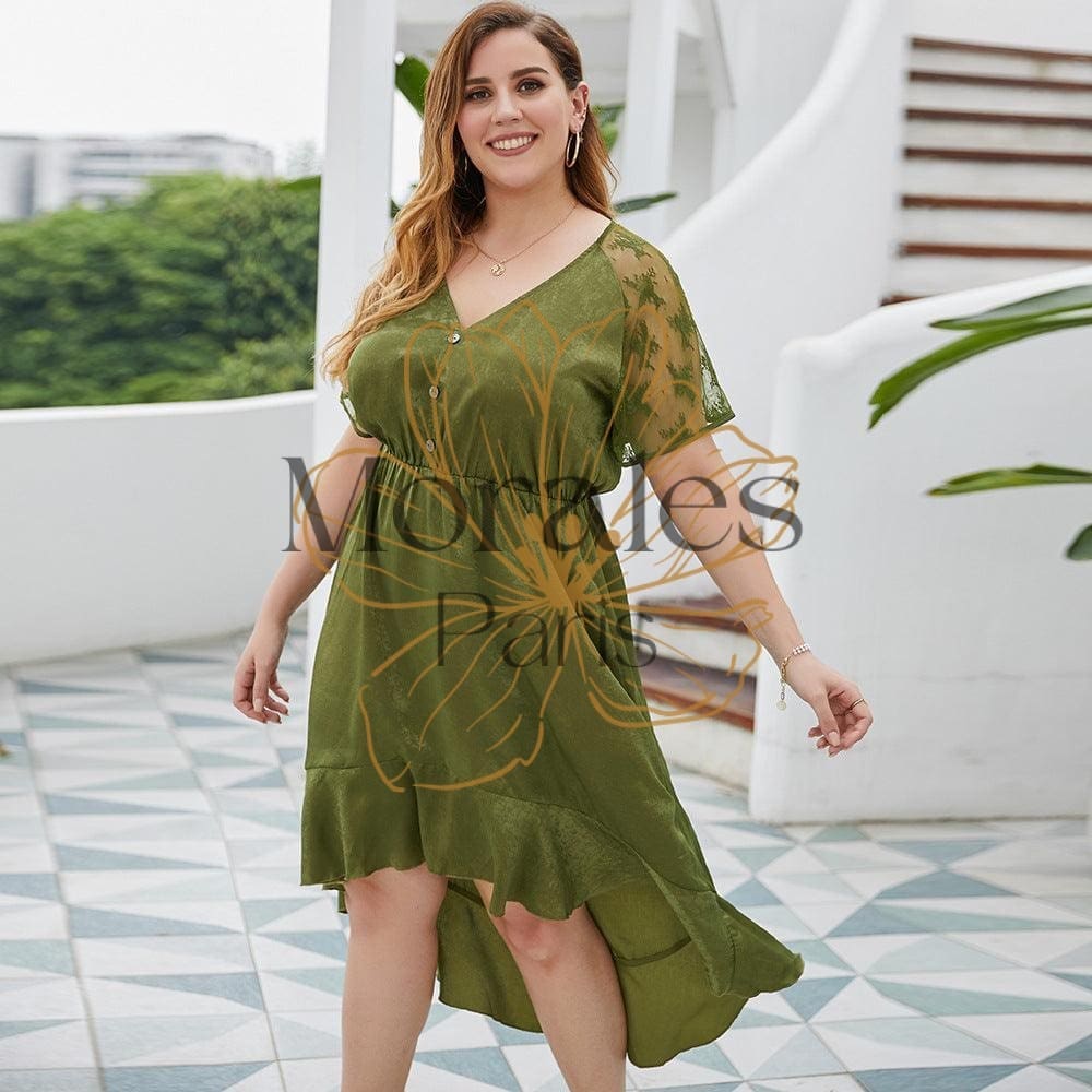 - Robe grande taille bohème. Disponible en noir et en vert.