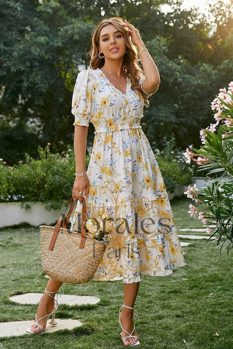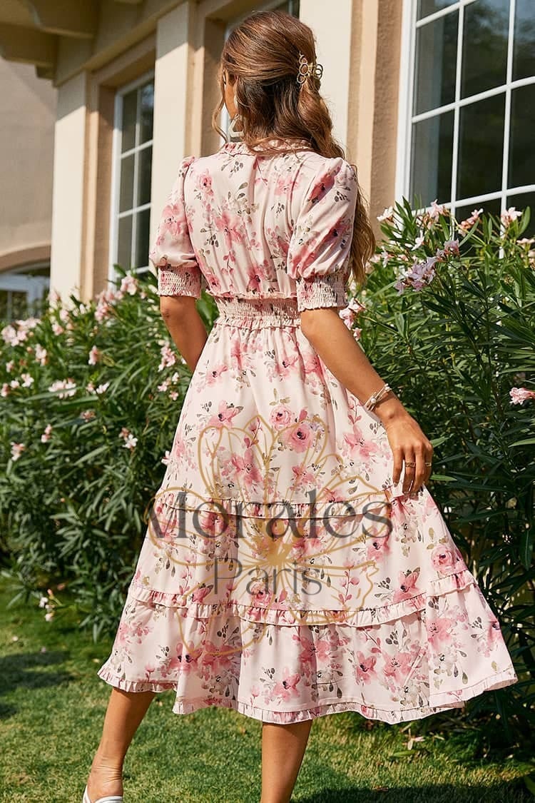 Robe Champêtre A Manches Courtes Et Longueur Midi