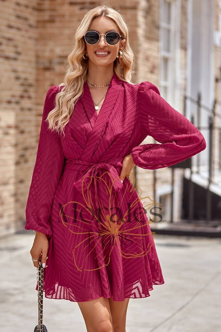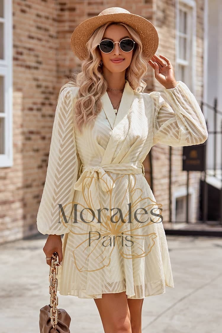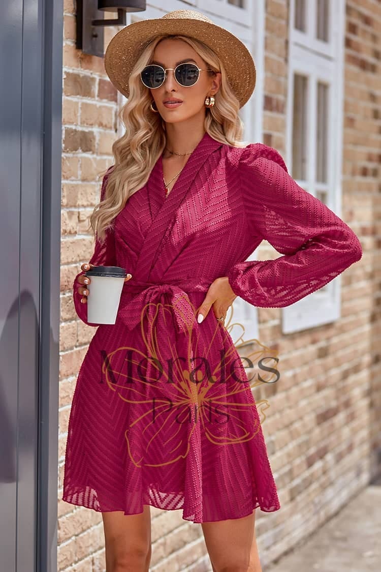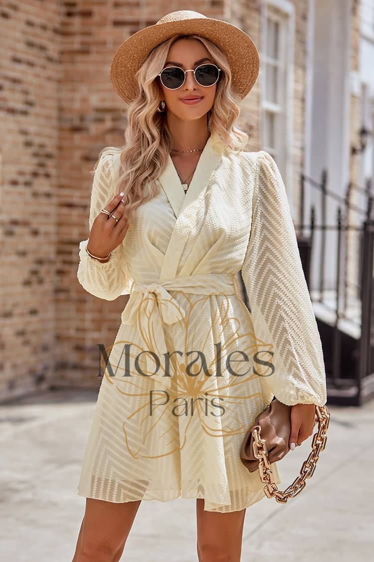 Son style chic et élégant mettra en valeur ton allure avec un col châle, des manches vaporeuses et une taille ceinturée. Et pour te donner un style champêtre, elle est disponible en coloris ivoire et burgundy qui viendra rehausser ton look.