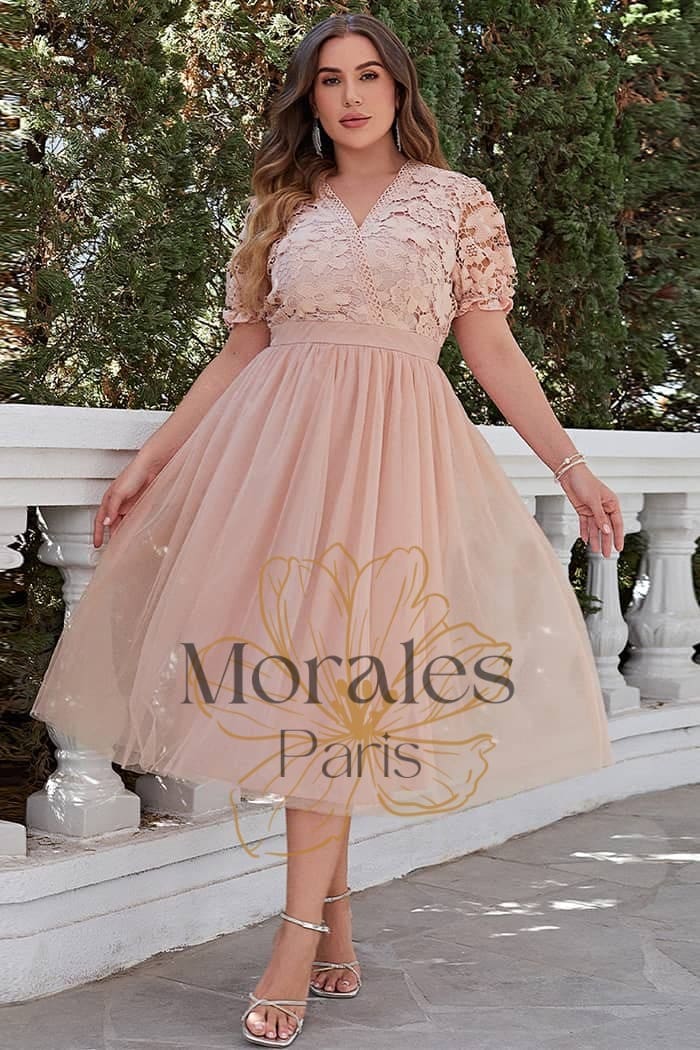 Robe Champêtre Rose Poudré Grande Taille