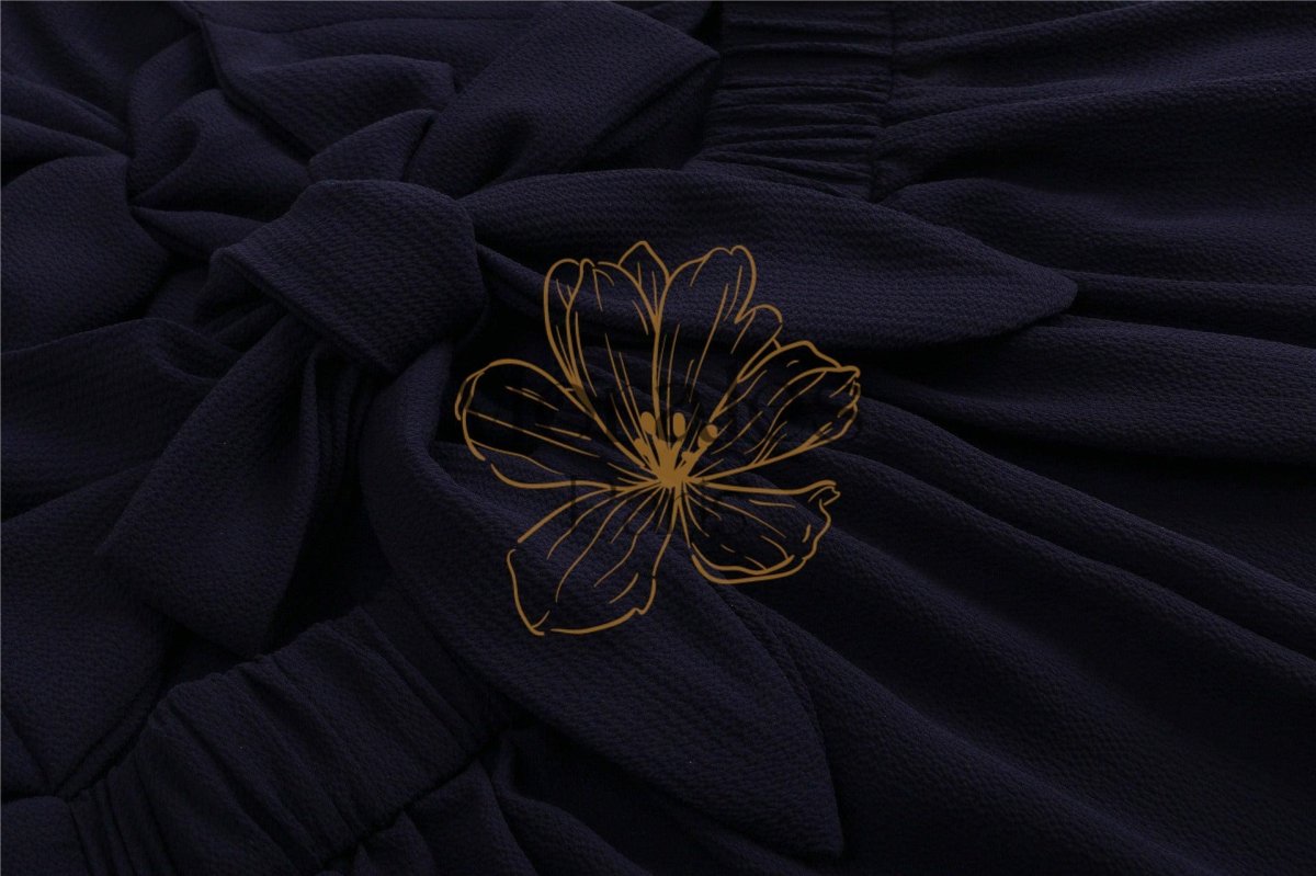Robe de cocktail éléganteen bleu marine avec col en V et fines bretelle. Offrez-vous cette robe cocktail bohème chic pour être rayonnante à votre prochaine sortie, soirée ou mariage d’amie.