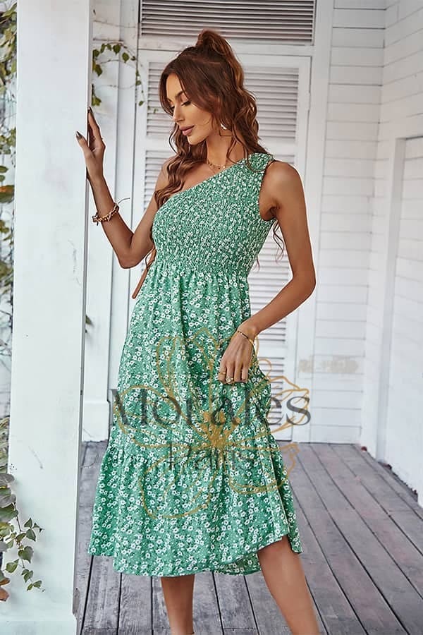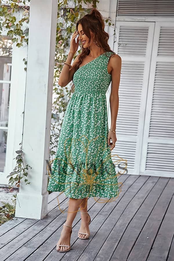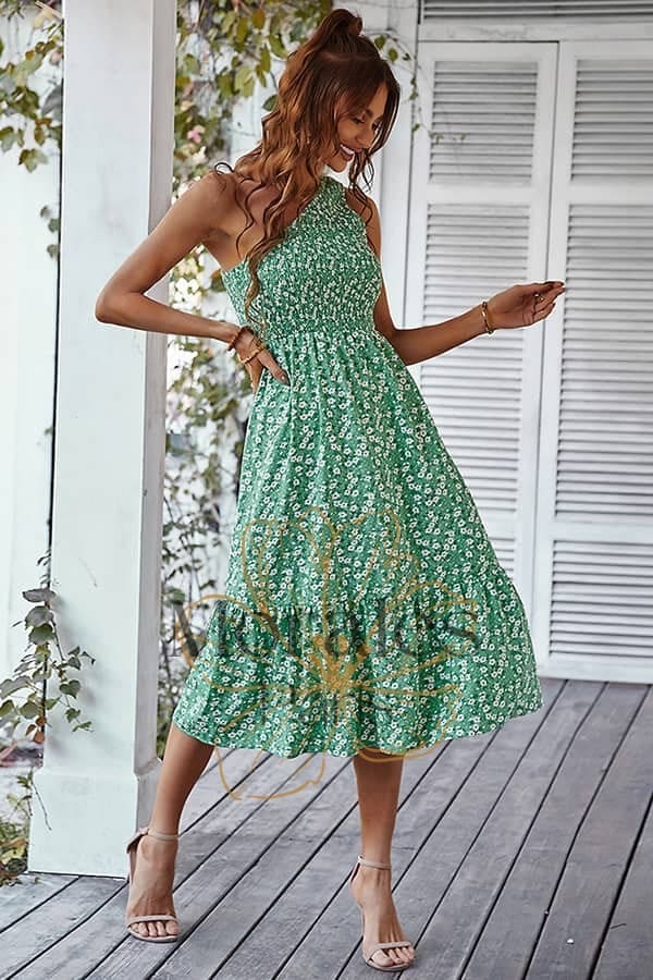Une touche bucolique ? Cette robe midi se décore d’un motif fleuri qui vous fera voyager dans une atmosphère de campagne et de nature. Et cette allure bucolique ne sera que plus mise en valeur par le décolleté dénudé de la robe.