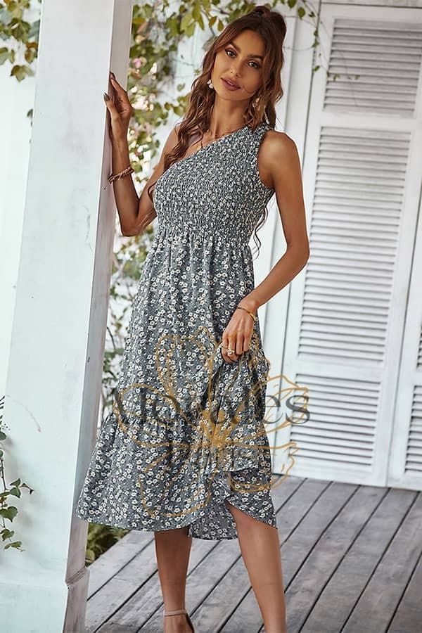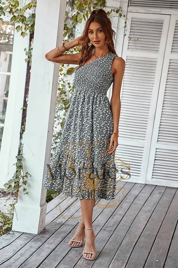 Robe de longueur mi-longue Haut smocké Encolure asymétrique Motif de fleurs Couleurs : Gris et Vert Composition : Polyester Une robe chic et élégante pour un mariage champêtre ! Pour une grande occasion, optez pour la robe cocktail et rayonnez ! Moderne et féminine, cette robe de mariage adopte une coupe mi-longue qui structure votre silhouette tout en […]