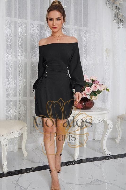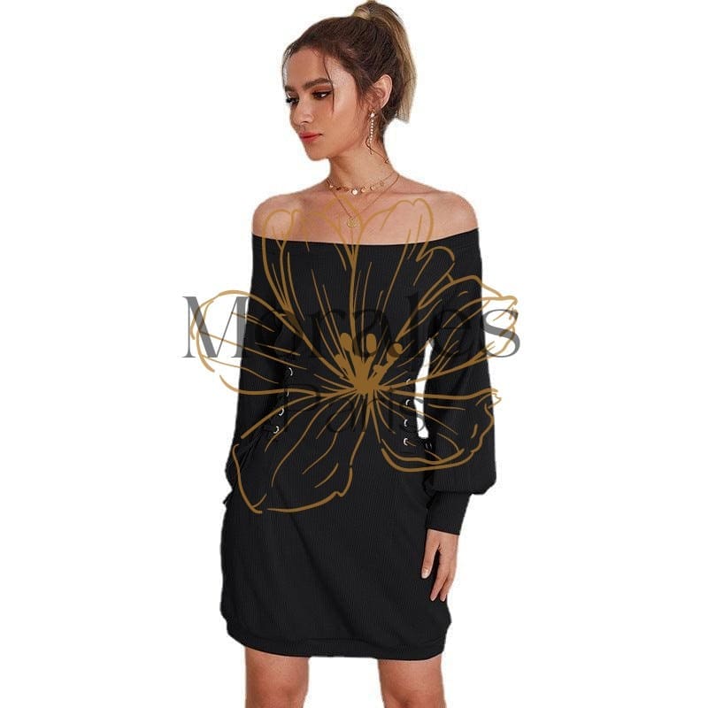 Cette robe noire courte à décolleté off-shoulder est l’idéale pour les passionnés du style bohème ! Sa coupe ample et le tissu léger vous procureront un grand confort et le look féminin vous fera rayonner. Qu’il s’agisse d’une rencontre amoureuse ou d’une sortie avec des amis, cette robe vous rendra élégante et superbe !