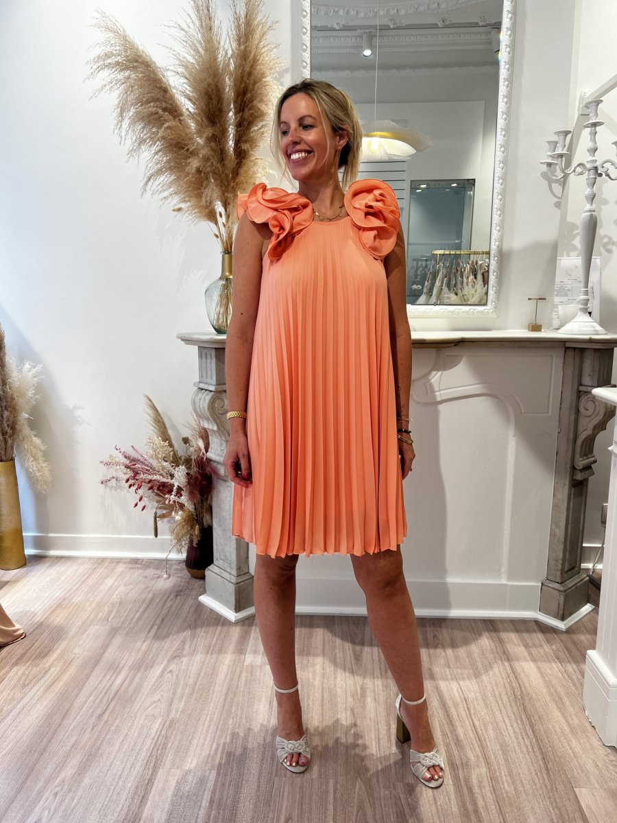 Robe courte plissée Carla Ruiz Saumon Taille 38