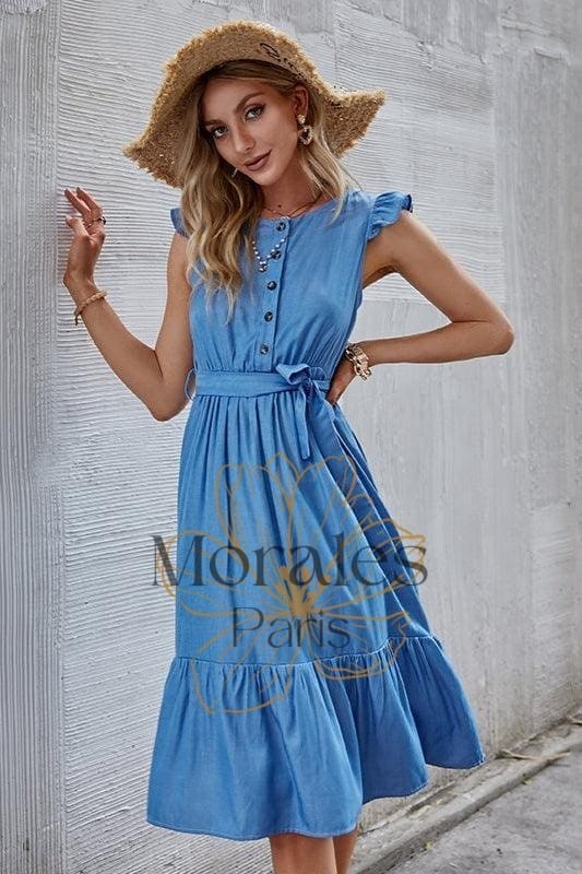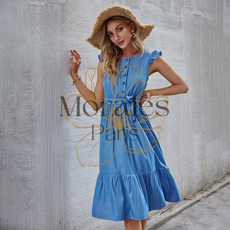 Cette élégante robe bleue boho est idéale pour une mariée à l’esprit ouvert. La jupe fluide et le tissu doux offrent à vos demoiselles d’honneur une liberté de mouvement, et ses détails uniques lui donnent une touche spéciale. Que ce soit dans le champ ou sur la plage, cette tenue est faite pour célébrer l’amour avec style.