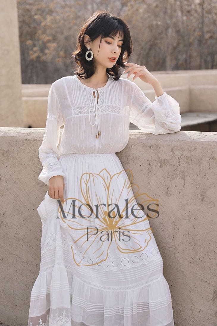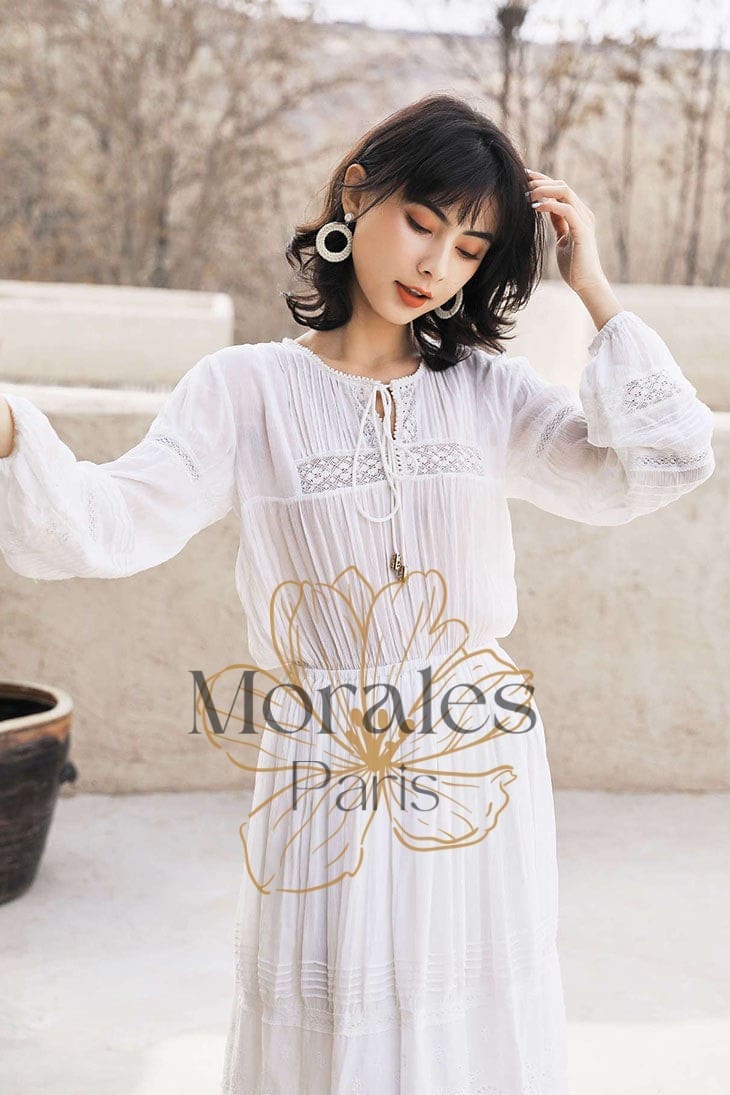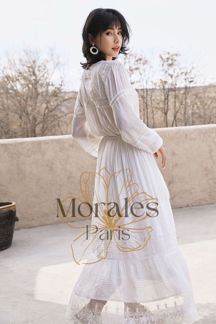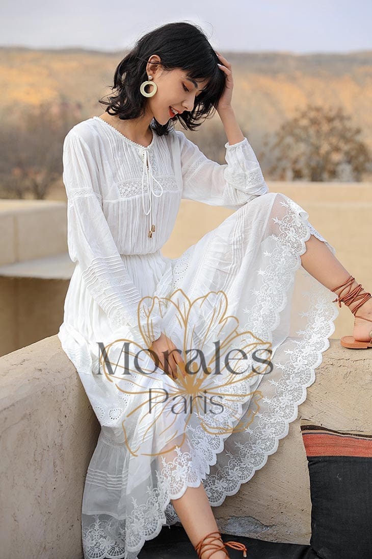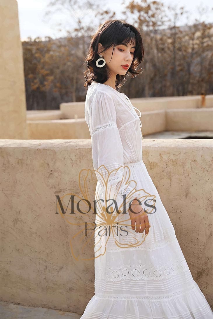 Vous recherchez une robe qui symbolise la romance bohème ? Ne cherchez pas plus loin que notre Robe de Mariée Bohème à Manches Longues ! Cette superbe robe est dotée de broderies complexes à l’ourlet, de manches longues et d’un col à cordon pouvant être porté sur ou hors de l’épaule. La coupe aérienne est parfaite pour danser sur la piste ou flotter le long de l’allée. Que vous organisiez un mariage de rêve à l’étranger ou une cérémonie décontractée dans le jardin, cette robe vous donnera une allure divine bohème.