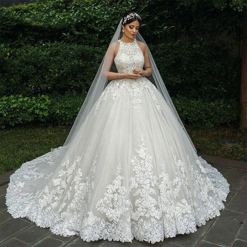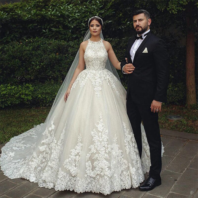 Robe de Mariée Princesse en Dentelle avec Traîne