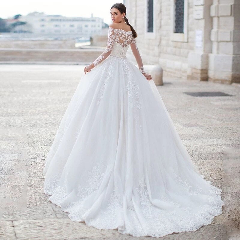 Plongez dans l’univers féerique de cette somptueuse robe de mariée, un véritable bijou qui attire tous les regards. Avec son corsage délicatement orné de dentelles et sa jupe en tulle qui s’évase avec grâce, cette pièce promet d’être la vedette de votre grand jour. Les manches longues en dentelle ajoutent une touche d’élégance intemporelle à cette silhouette de rêve.