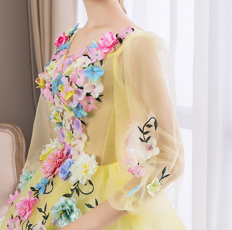 Sublimez votre allure dans cette robe de princesse pétillante, confectionnée avec un dégradé enchanteur de tulle. Sa jupe ample et légère vous enveloppera de douceur, vous permettant de briller lors des soirées et de graver des souvenirs inoubliables.