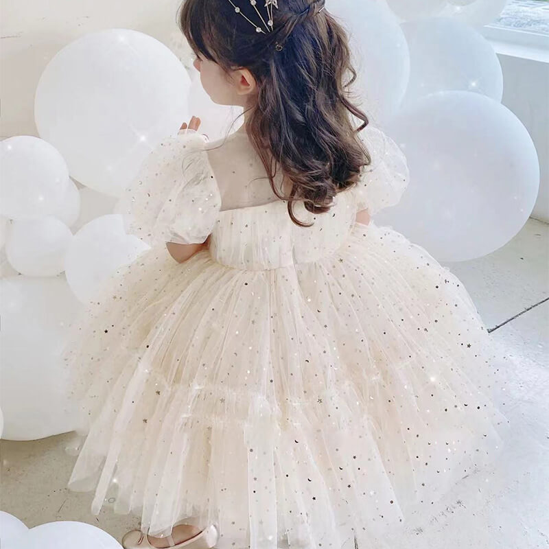 Robe étincelante pour les petites princesses – en tulle blanc cassé