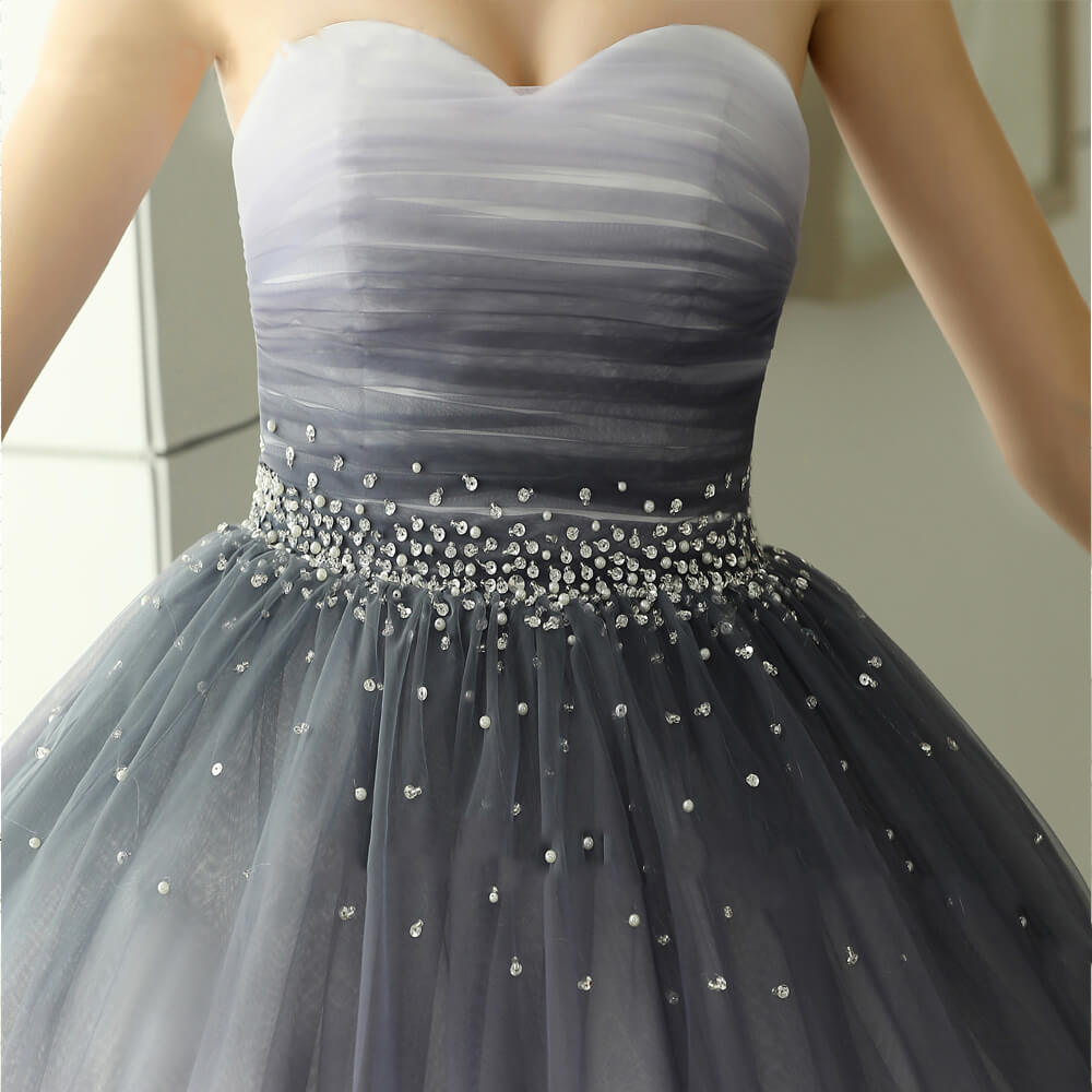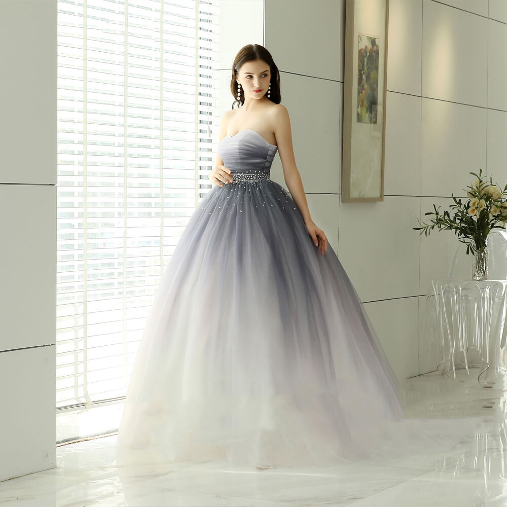 Préparez-vous à vivre une expérience dont vous ne voudrez plus vous passer ! Cette robe est un véritable chef-d’œuvre qui allie élégance et allure chic. Sa jupe, ornée de perles scintillantes, s’épanouit gracieusement depuis la taille jusqu’à la longueur souhaitée, créant un effet visuel époustouflant grâce à son dégradé de couleurs.