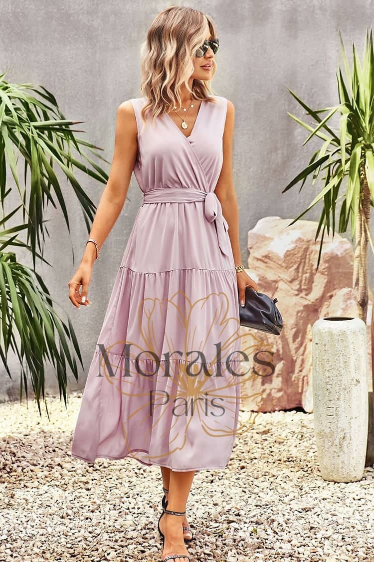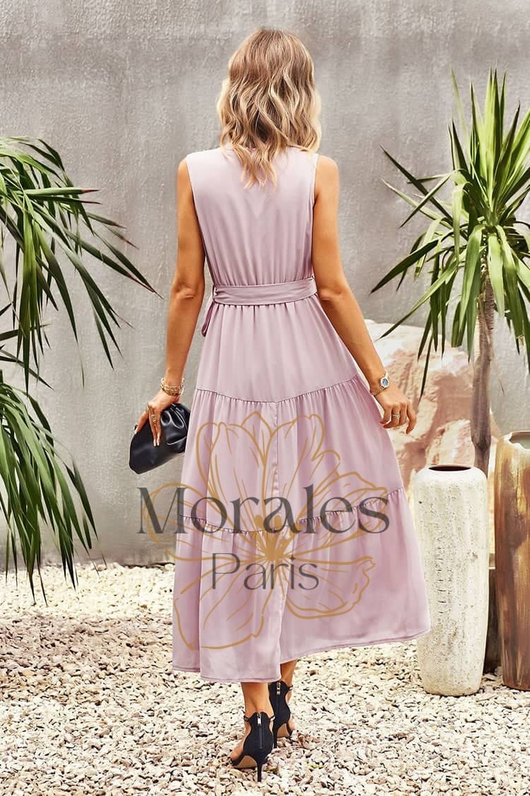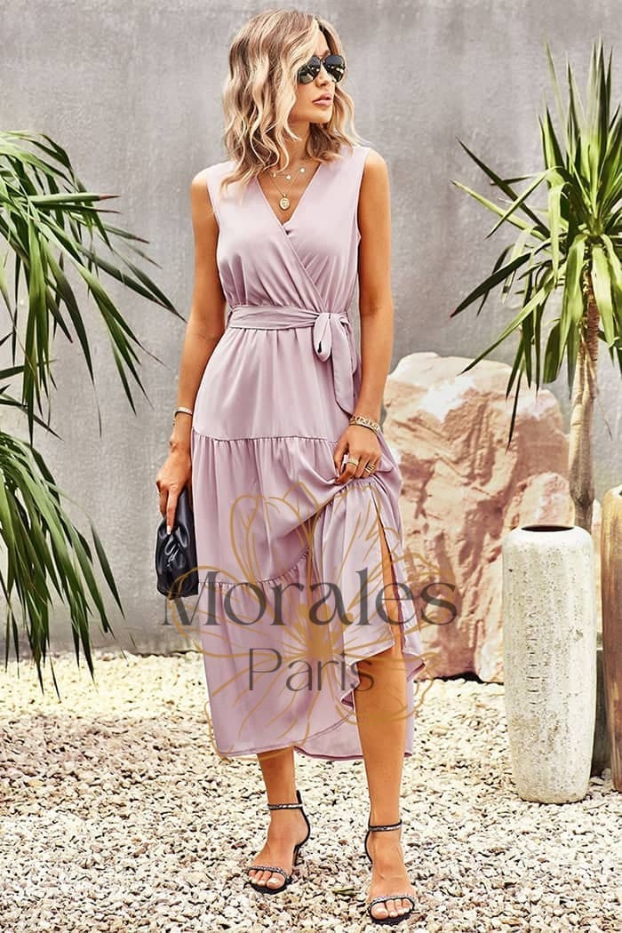 Vêtement long Encolure en V croisée Manches absentes Taille serrée Couleur : Rose Composition : Polyester Pour une soirée ou pour tous les jours, cette robe rose de style champêtre saura te rendre radieuse ! Cette robe unie charme par sa couleur rose pâle au style bucolique, apportant une douceur incomparable. Son rose pastel adoucit l’ensemble et habille avec distinction et […]