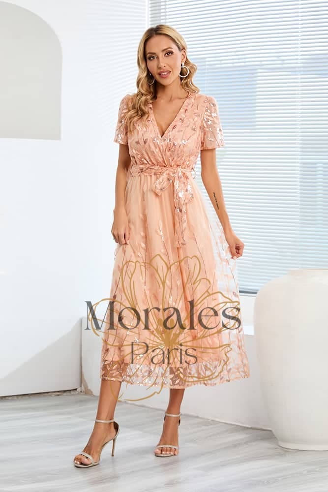 Vêtement long Encolure en V Taille ceinturée Manches courtes volantes Tissu en tulle Motifs floraux et sequins Couleurs : Bleu et Rose Composition : Polyester Vêtement idéal pour un mariage : robe de soirée champêtre Pour une allure aussi chic que bucolique, cette robe de cocktail est la pièce indispensable pour les grandes occasions. Grâce à sa […]