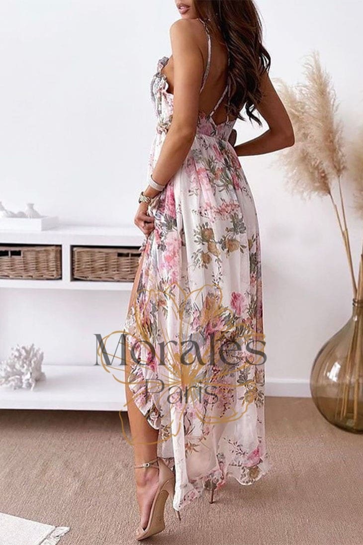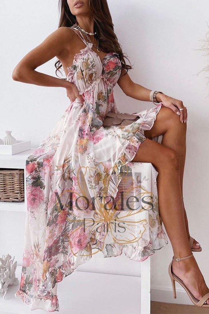 Cette jolie robe présente un superbe motif floral rose et un décolleté à volants, ce qui en fait le choix idéal pour votre prochaine occasion spéciale. De plus, son tissu léger vous permet de rester à l’aise toute la nuit. Qu’il s’agisse d’un mariage ou d’une soirée en ville, cette robe ne manquera pas de faire tourner les têtes.