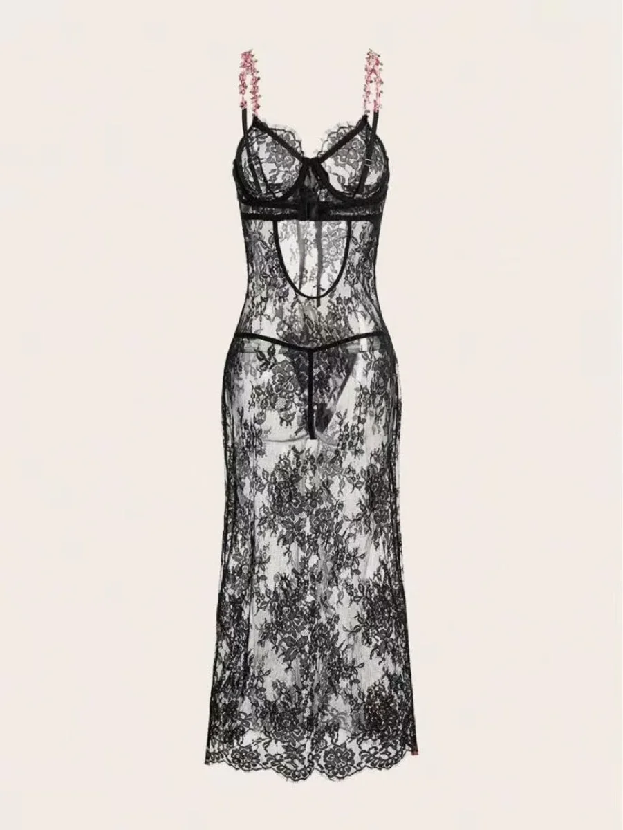 Robe en dentelle délicate disponible en noir, rouge ou blanc, conçue pour séduire avec élégance. Cette pièce transparente révèle subtilement vos formes tout en conservant une certaine mystique. Livrée avec un string assorti pour un ensemble harmonieux, elle est agrémentée de bretelles ornées de roses en tissu qui ajoutent une touche romantique et raffinée. Parfaite pour les occasions intimes ou les moments de confiance en soi, cette robe allie transparence et féminité avec sophistication.