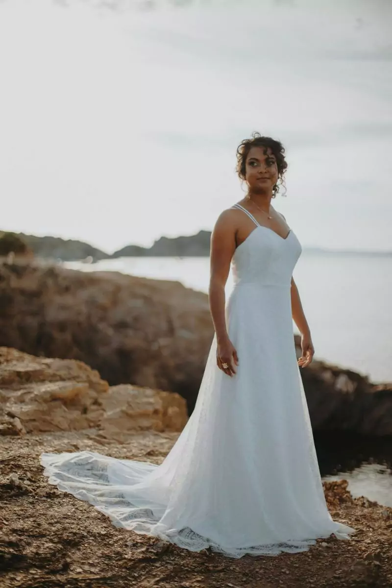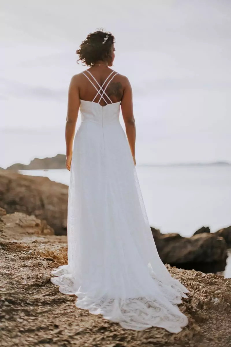 Robe de mariée bohème chic estivale en tulle brodé Ana.