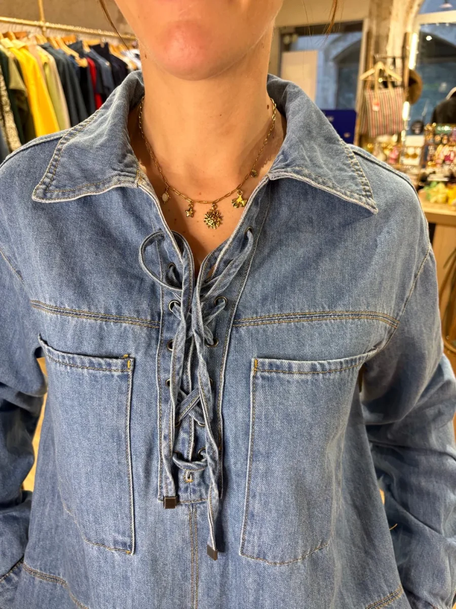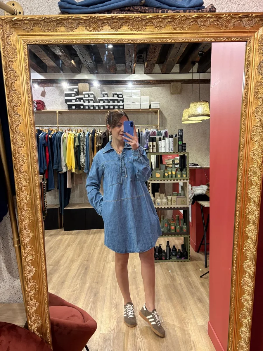 Robe en jean 100% cotonDécontractée et ultra facile à porter, cette robe en jean est un indispensable du dressing. Sa coupe droite légèrement ample offre un confort optimal tout en restant flatteuse. Le col chemise et la patte de boutonnage apportent une touche casual chic, parfaite pour un look du quotidien. Confectionnée en 100% coton, […]