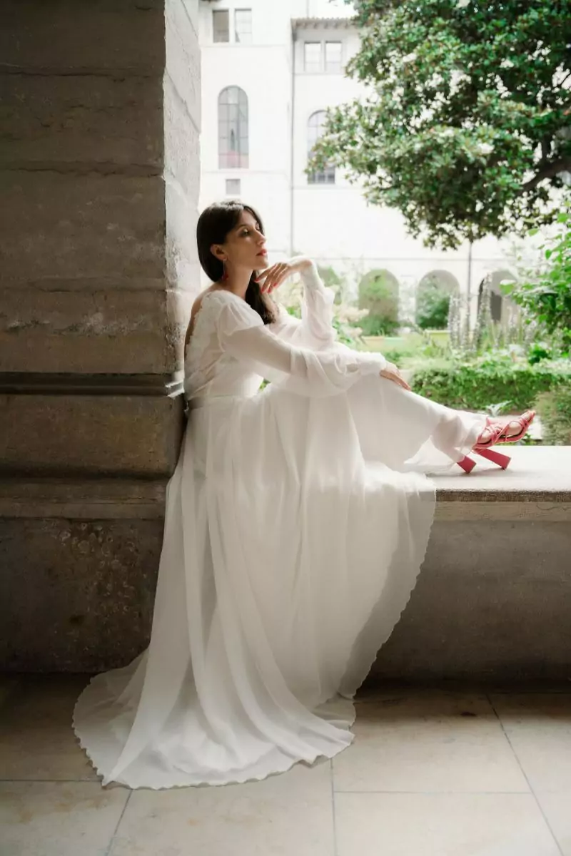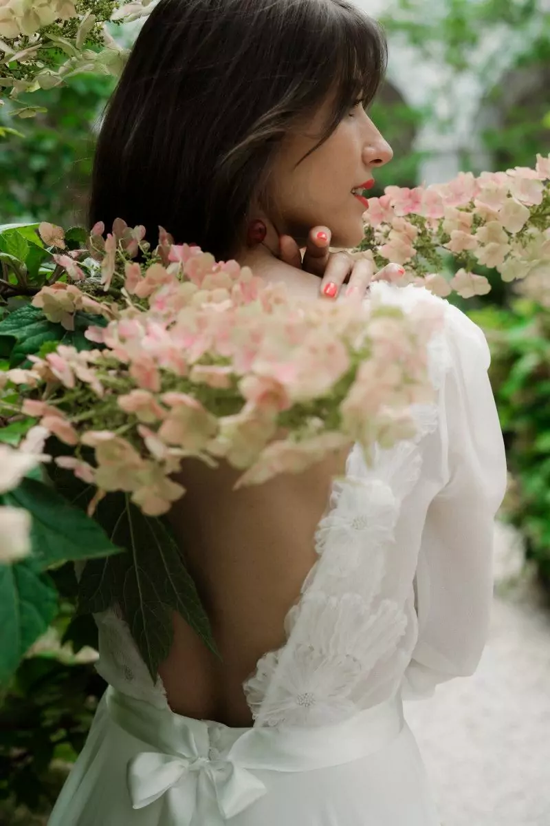 Robe de mariée épurée, romantique et aérienne.