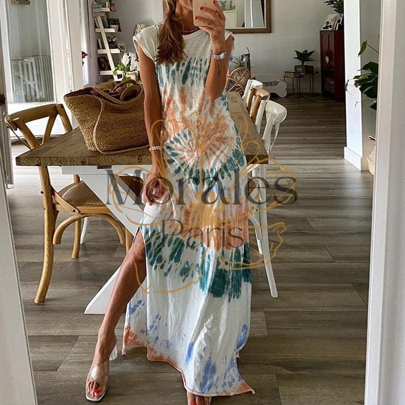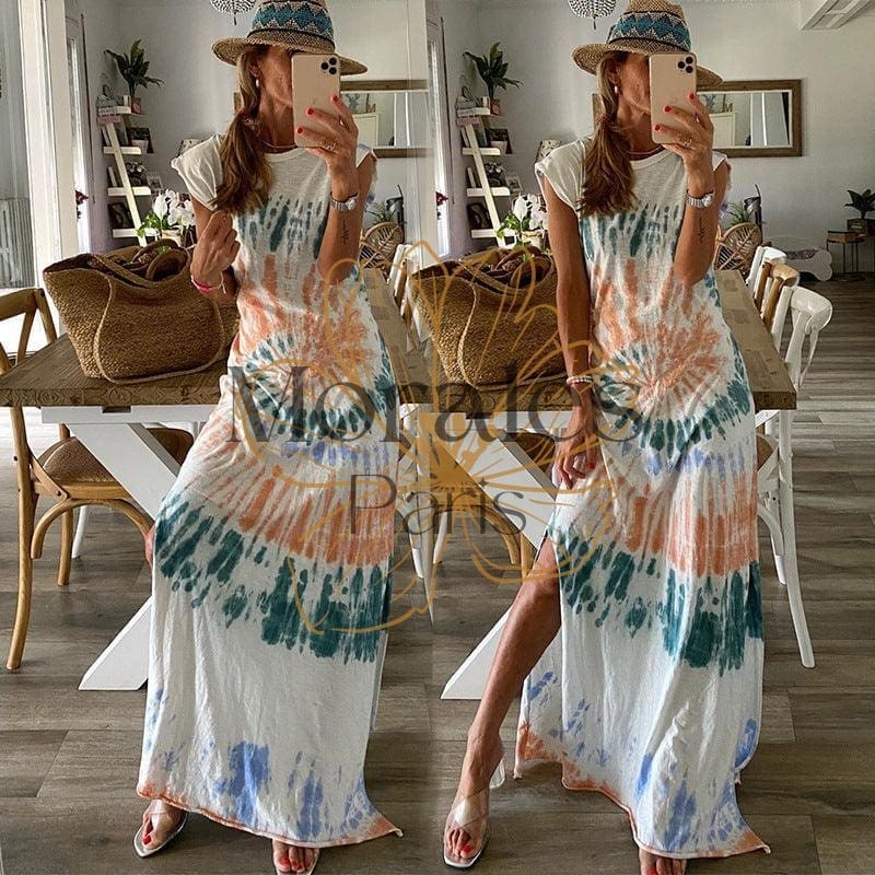 Cette robe se caractérise par un mélange unique entre l’esthétique bohème et hippie. Elle est conçue dans un tissu doux et fluide qui enveloppe votre peau. Sa coupe ample vous donne une liberté de mouvement, et son imprimé élégant ajoute une touche glamour à votre look. Que vous sortiez entre amis ou que vous passiez une journée à la plage, cette robe sera parfaite pour toutes les occasions.